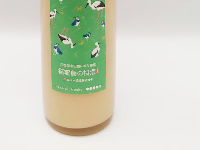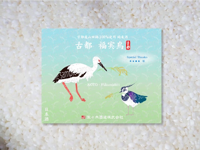 ラベルには福を運ぶコウノトリとタゲリ。「古都 福実鳥(ふくみどり)」と名付けました。