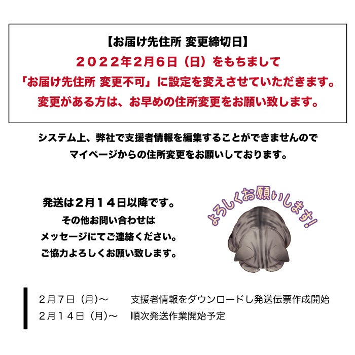 お届け先住所の変更締切日のお知らせ