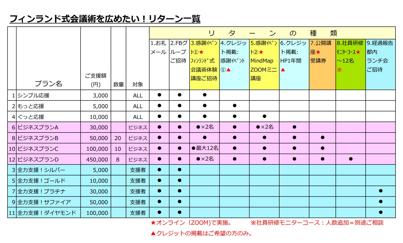 8.フィンランド式会議術:社員研修12名様分をモニターコースとしてご提供。