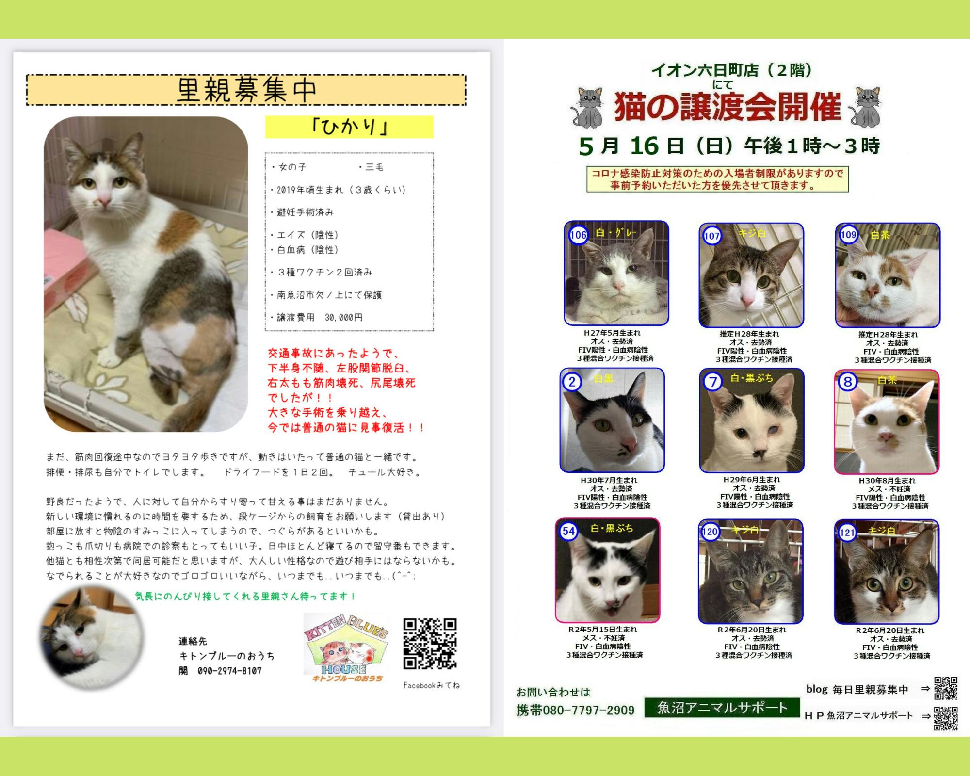 感染症対策として、里親希望の方は予約が必要となりますので、詳しくは魚沼アニマルサポートホームページhttps://uas.localinfo.jp/までお願い致します。