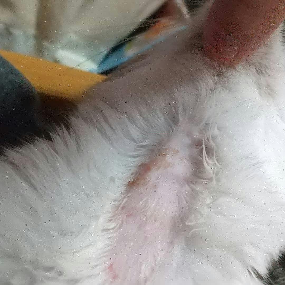 ワクチンついでにずっと良くならない皮膚炎も相談に。皮膚炎は以前にも診察してもらってて、お薬だしてもらってましたがお薬をつけても良くならず、ハゲがどんどん広がっていました。