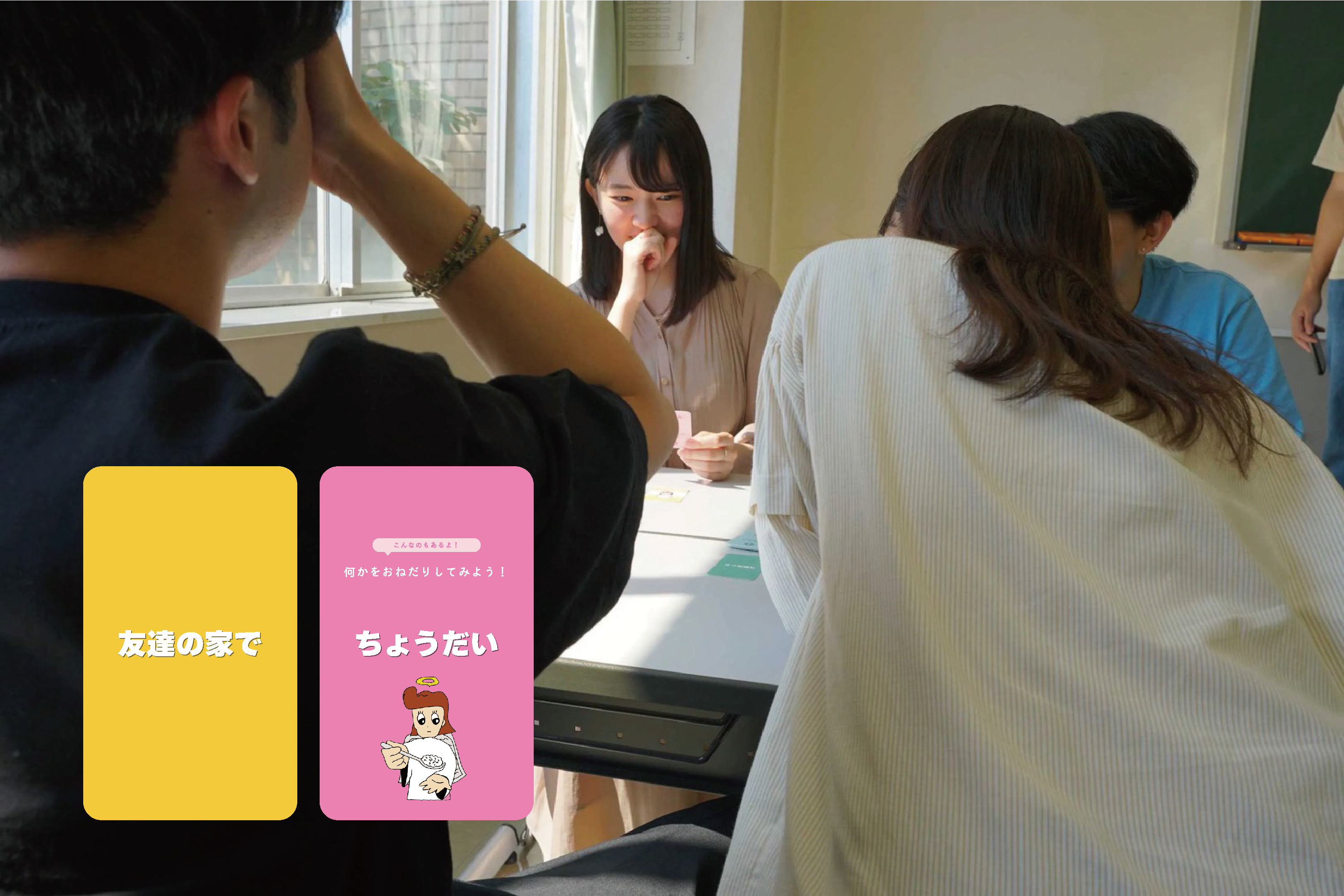 私たちは「人に甘えられない若者がどのようにしたら人に甘えられるようになるか」というテーマを掲げて現在活動しています。
