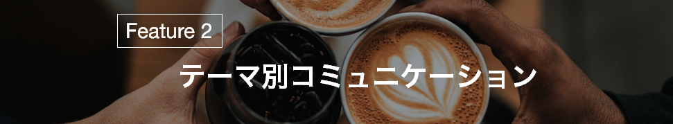 ニュース、英語、美容、スポーツ、料理、育児、ことわざ、セカンドライフなど、同じテーマに沿って話をしたいメンバーと音声会話と、メッセージチャットでのコミュニケーションが可能です。