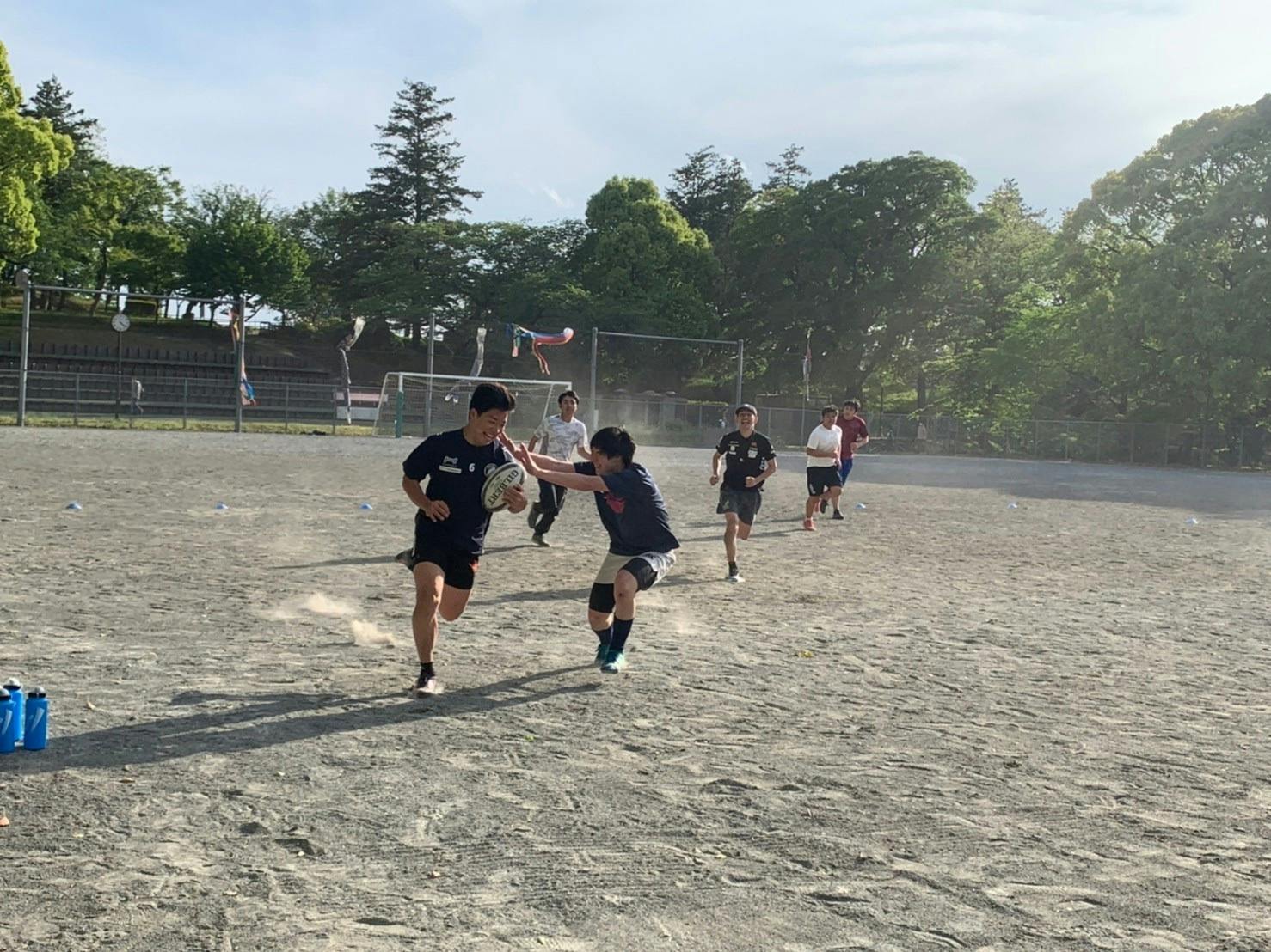 練習するグラウンドが自前で用意できないため、教室を使ったり、公園や合同練習などでトレーニングを積んできました。 また2019年度には、合同チームとして創部発の全国大会予選に出場することもでき花園に向けて、目の前の1試合に向けて、同じ目標に向かって努力する仲間と楕円球を追いかけました。 今後もラグビーを通じて沢山の経験や、様々な価値観を身につけ、社会で生きる力を育てていきます。
