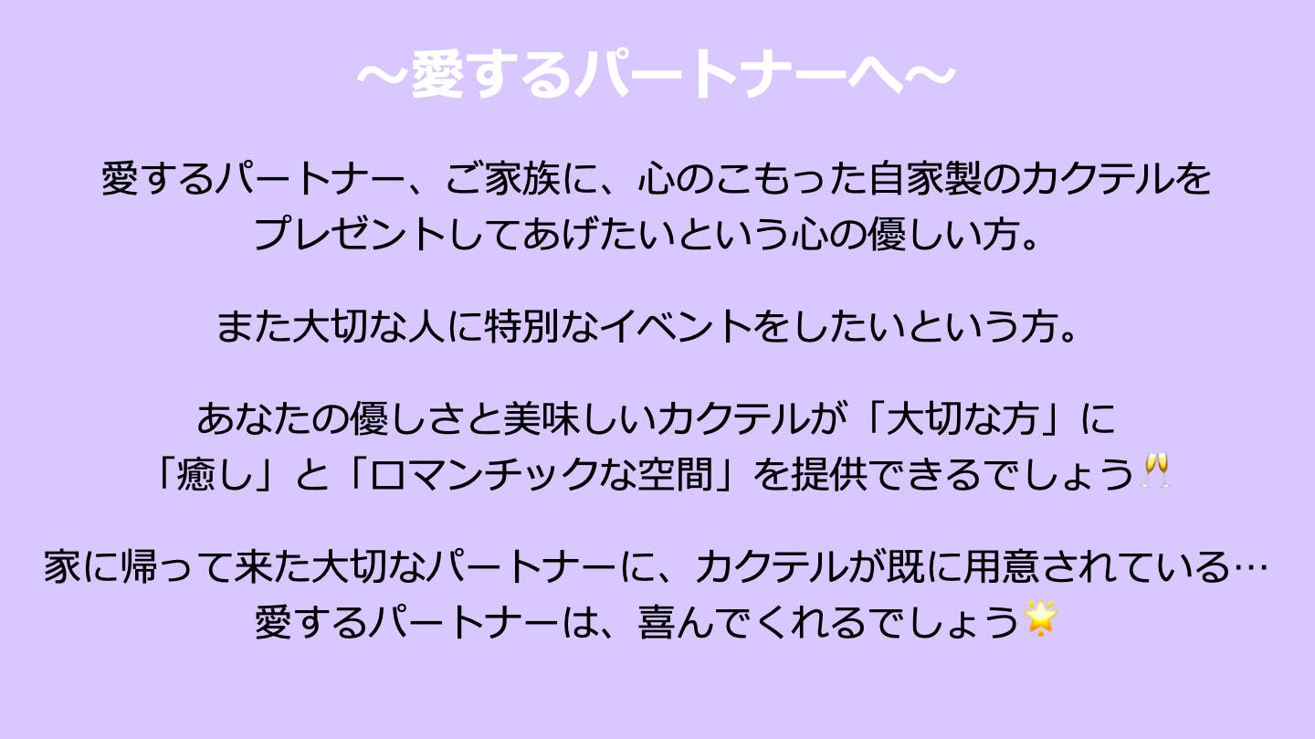 コロナ禍で宅飲みが多くなり、ご自宅で気軽に「自家製のカクテル」を作り、楽しんで飲んでいただく可能性を広げたいと考えています。