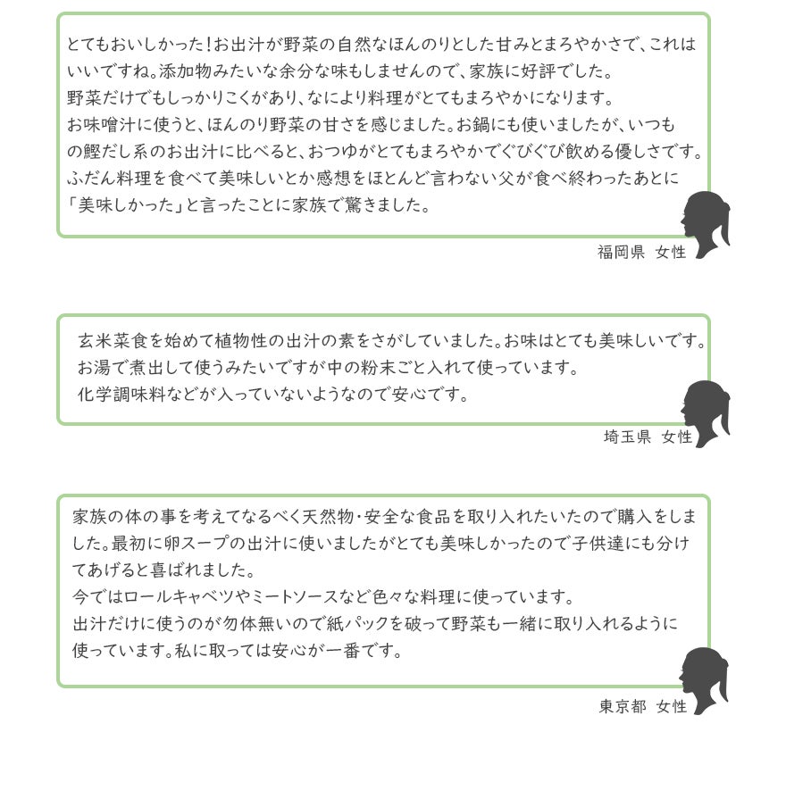 norleの野菜だけのやさしい旨みだしを実際にお使いのお客様からのお声をご紹介いたします。