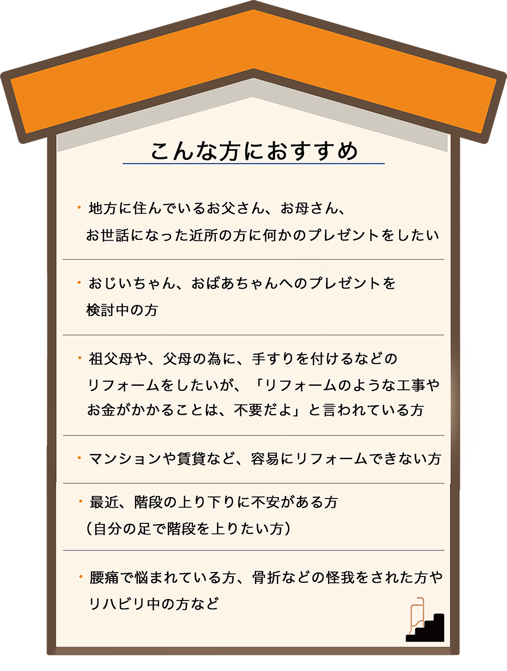 リフォームするほどではないものの、毎日の階段の上り下りは大変だと思います。