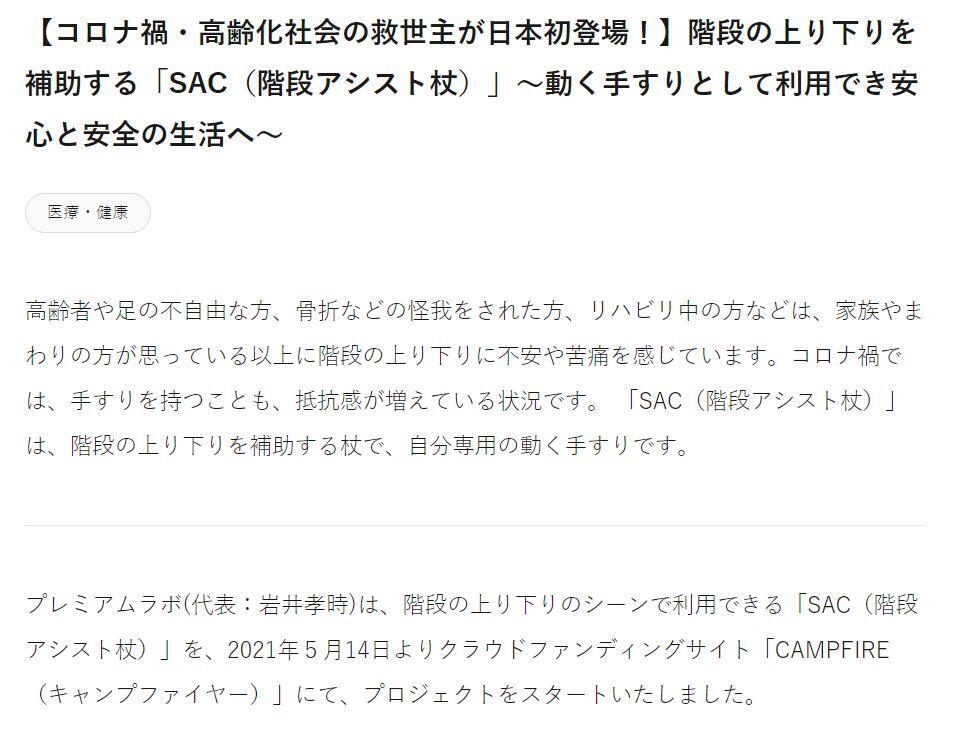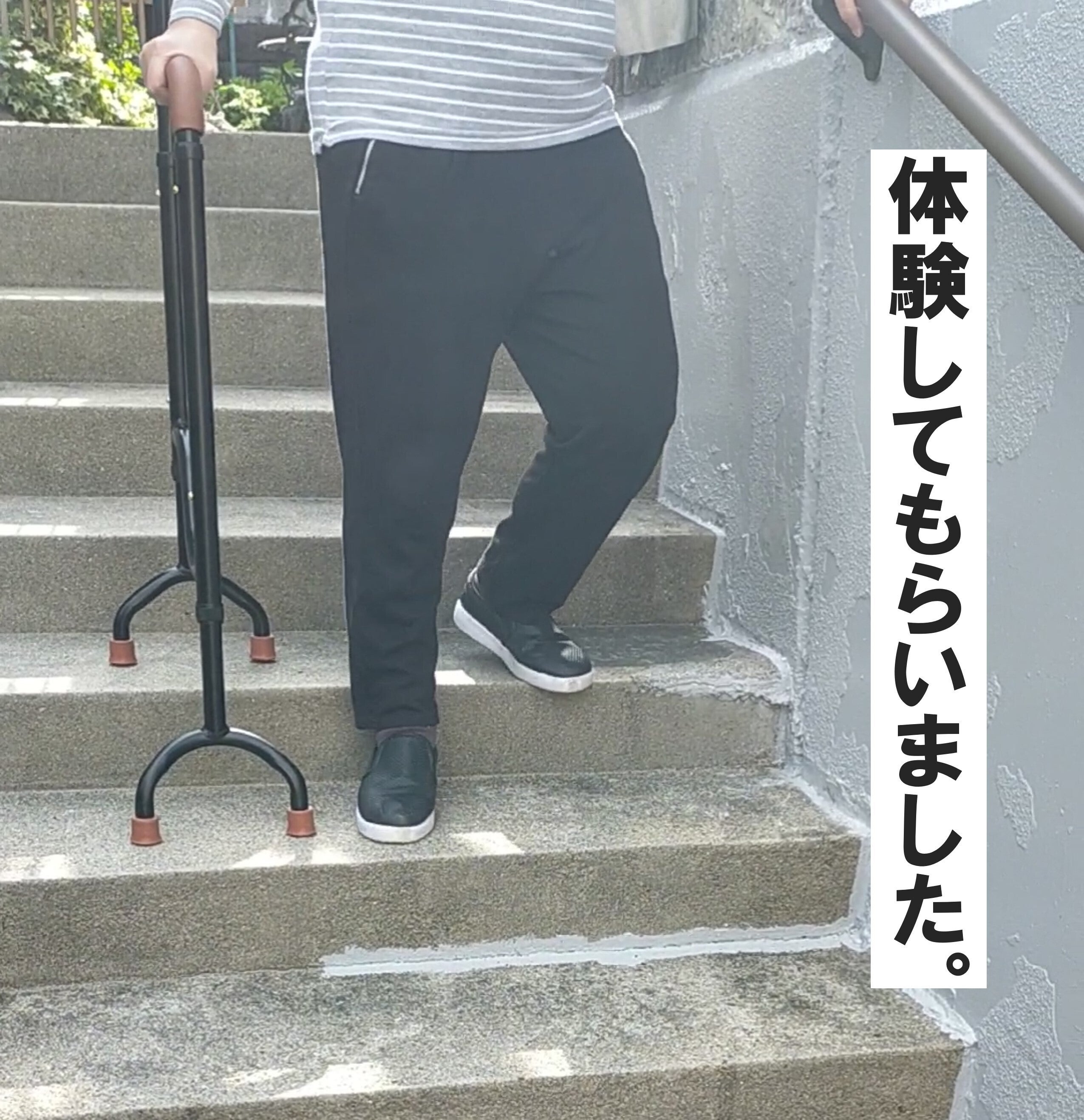 デイサービスをされている方にお試しサンプルを利用してもらいました。サンプルの利用前に見た瞬間「階段を降りる際に助かる。この発想がなかった。」とのことで、実際に使ってもらう前に有益性を分かってもらいました。介護の現場では、日常から階段を降りる際に課題があったようです。階段を降りる際には、サポートする側も怪我の恐れがないかなど神経質になるようです。足の不自由な方や、介護サポートが必要な高齢者の方は、なおさら日々の日常で恐怖心があるようです。実際に利用して頂くと、「思った通り、安心感がある。」とのコメントを頂きました。少しでも安心と安全の生活の実現に向けて。