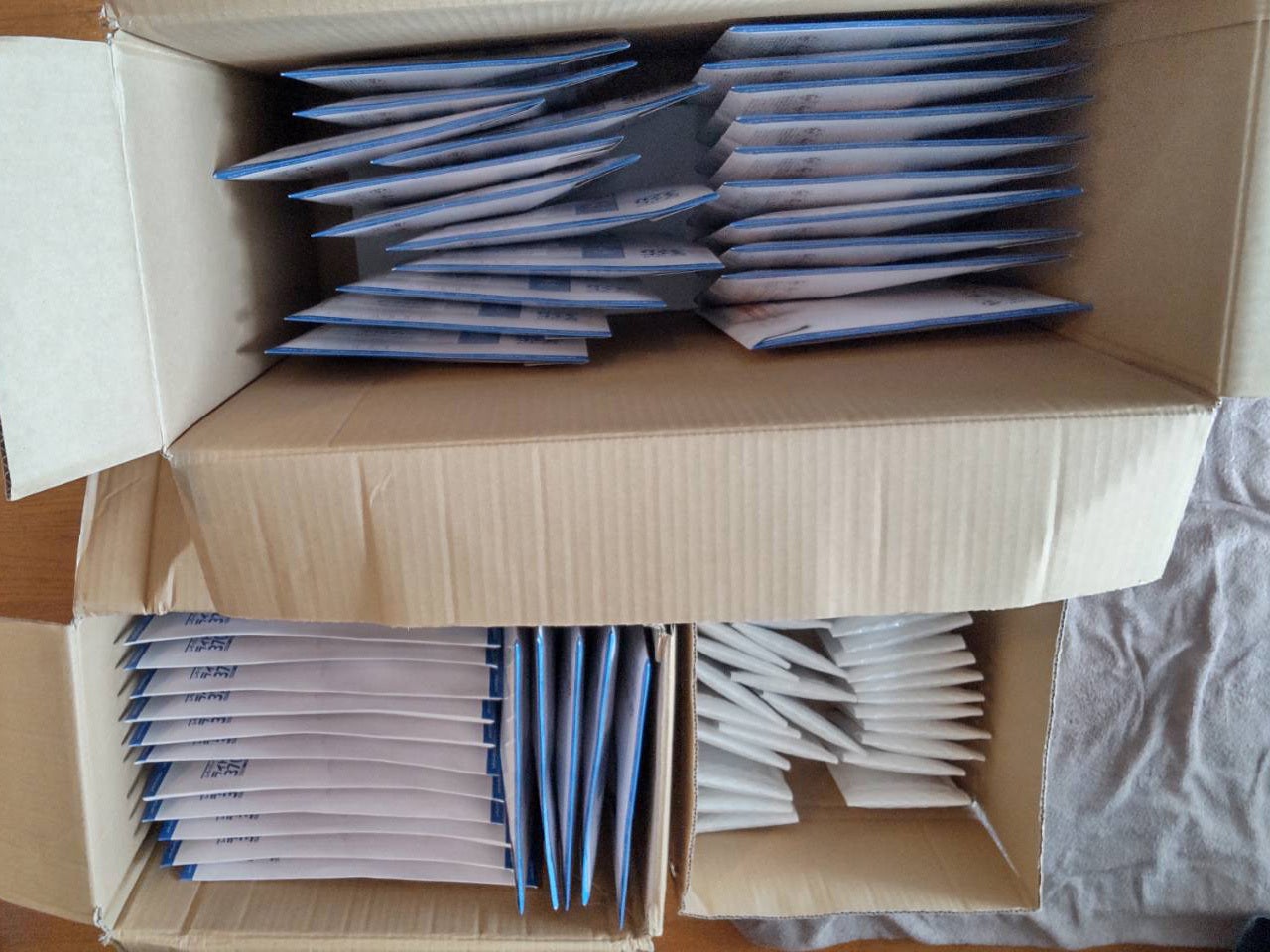 こんにちは、小笠原ユースホステルクラウドファンディングプロジェクト運営事務局です。クラウドファンディング・リターン品の発送状況についてお知らせします。リターン品の40周年記念4点セット&TARAガラス(しずくのチャーム)は今便で全ての皆さんに発送されます!当初7月中にはお届け出来るとお伝えしておりましたが着発便が始まり思う様に作業が捗らず、ヘルパーさんの手を借りて梱包しました。また、どうしてもお一人お一人にメッセージを届けたいと思い短い文章ではありますが添えさせて頂きました。(遅れた言い訳)2021年7月31日父島発の船に乗せましたので、手元に届くのは8月に入ってしまいます。ごめんなさいm(_ _)m島のTARAガラスは勿論のことタオル・缶バッチ・ステッカーは有志の方がそれぞれ試行錯誤を繰り返し想いを込めて作られた作品です。間もなく届きますので待ってて下さいね!記念フラッグ作成も水面下で進んでおります、もうしばらくお待ちください!