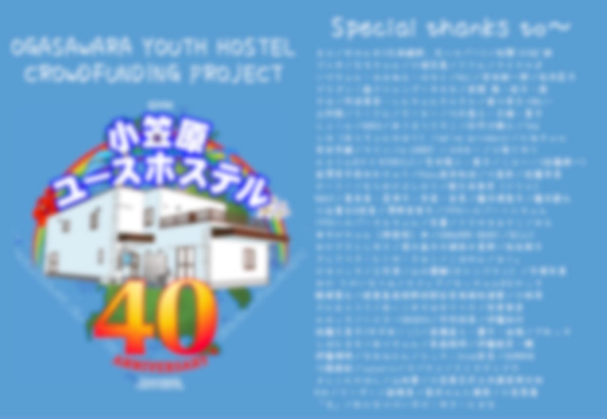新型コロナウイスル感染拡大を受け経営が大変厳しい状態に陥っております。 また企画していた40周年記念パーティーが中止に会場のキャンセル料がその後の経営を圧迫しているのも事実です。 皆様が帰って来られる小笠原ユースホステルをこの先も続けて行けるようご支援宜しくお願い致します。