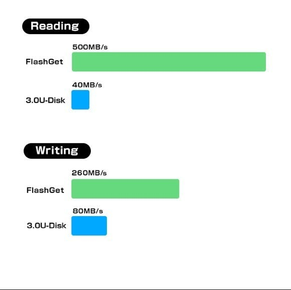 FlashGetは最大読み込み速度500MB/s以上、最大書き込み速度260MB/s以上の高速データ転送を実現するモデルです。