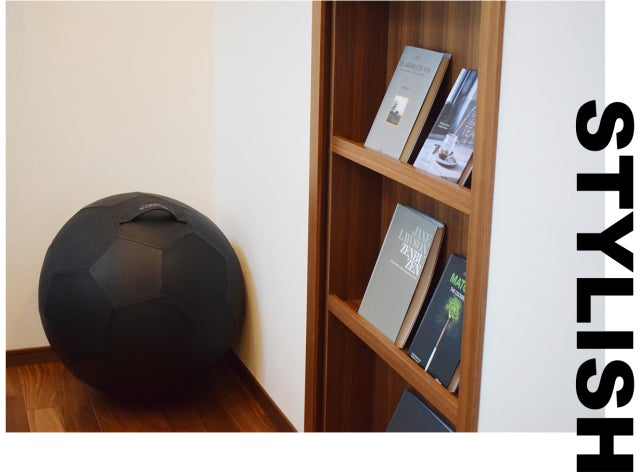 運動用のバランスボールに見えないのでインテリアとして、リビングや寝室、書斎など置く場所を選ばず快適なひとときを演出する逸品です。