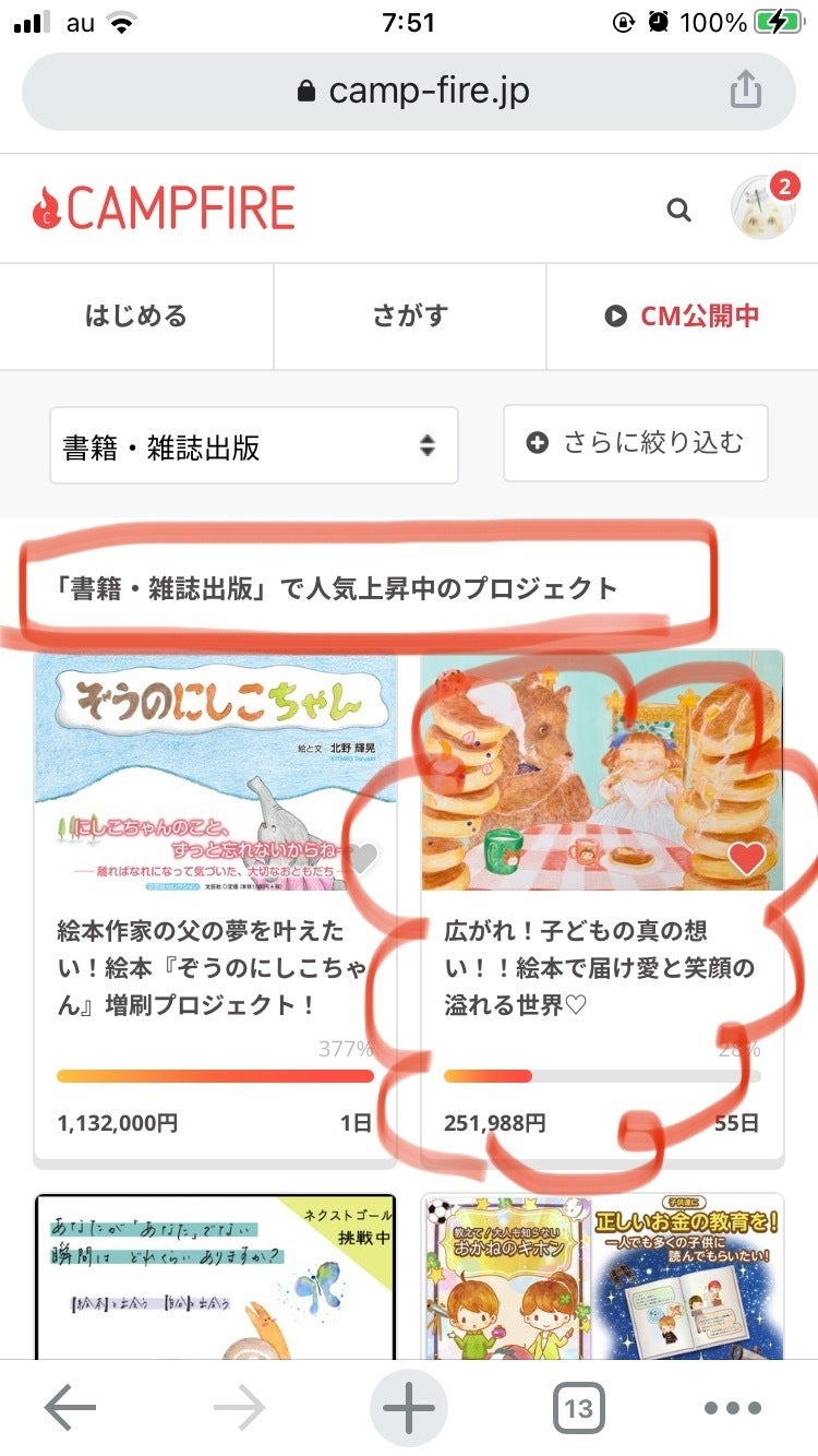 私たちのプロジェクトが、CAMPFIREの書籍・雑誌出版で人気急上昇の1番上段になっていたからです!!!