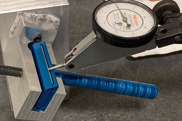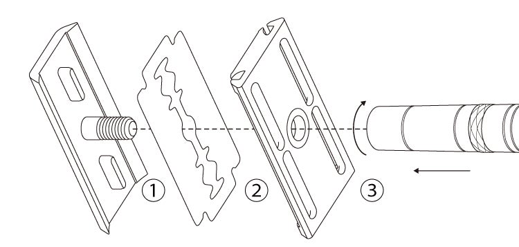 人工衛星の製造に必要なAS9100航空宇宙規格を扱う工場で、余分な厚みが出るクロームメッキや塗装をせずに、精密に機械加工されています。そのため、刃の角度と露出は0.005mmという公差(※)を実現しました。