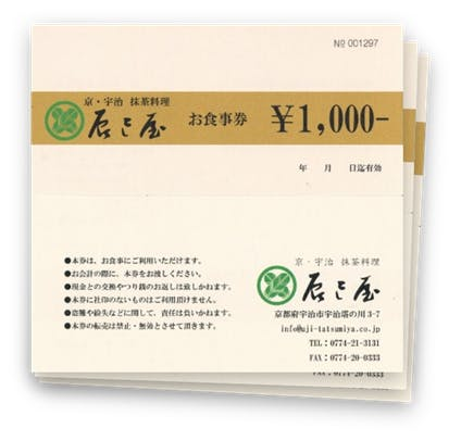 辰巳屋店内飲食限定のお食事券(¥10,000)をお届け致します。