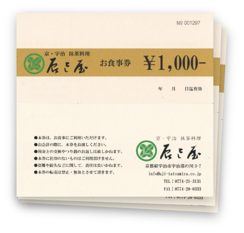 辰巳屋店内飲食限定のお食事券(¥3,000)をお届け致します。