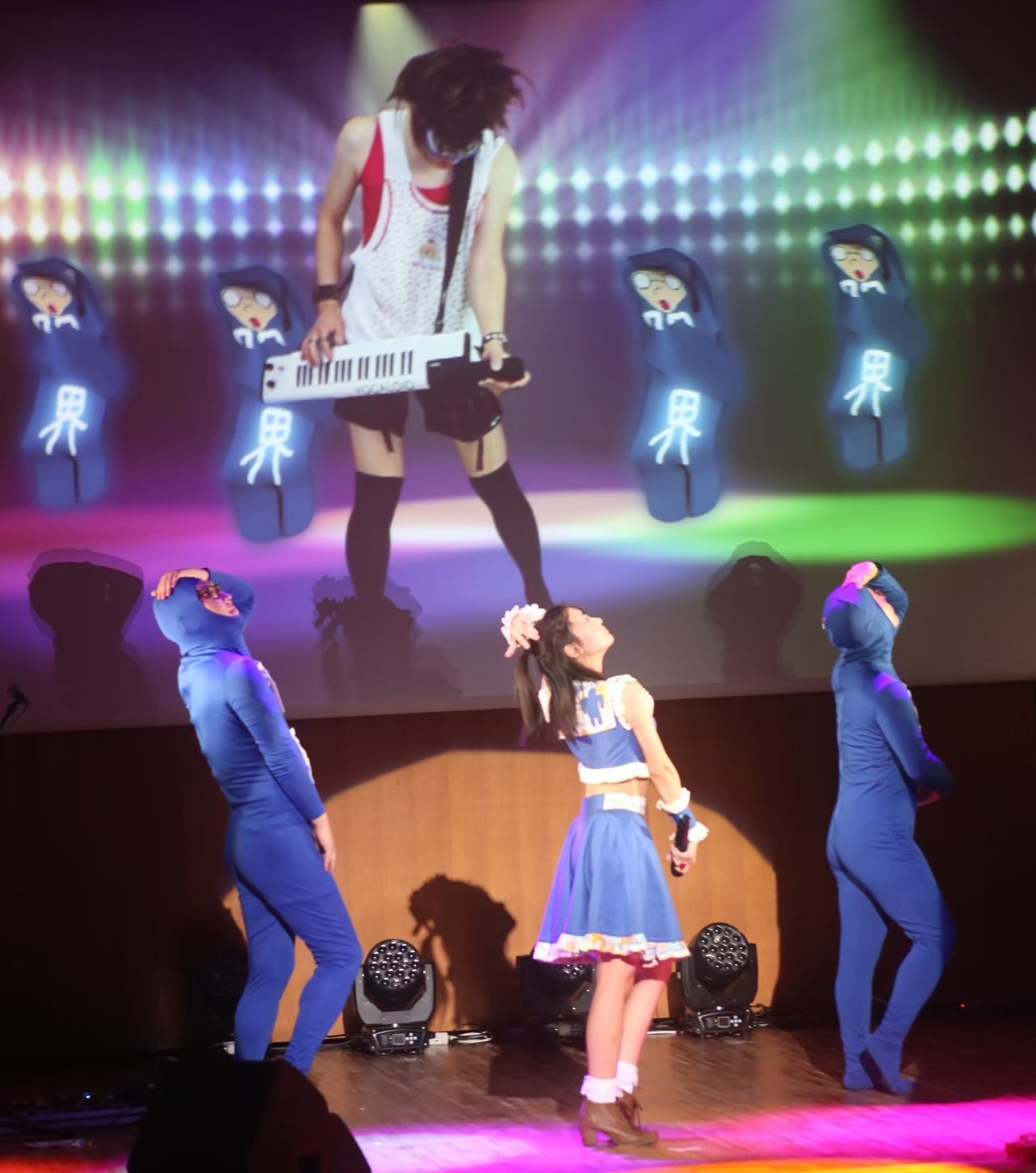 ・全身青タイツで映像を担当する限界VJの小さい方のお兄さん。映像系と声優担当。