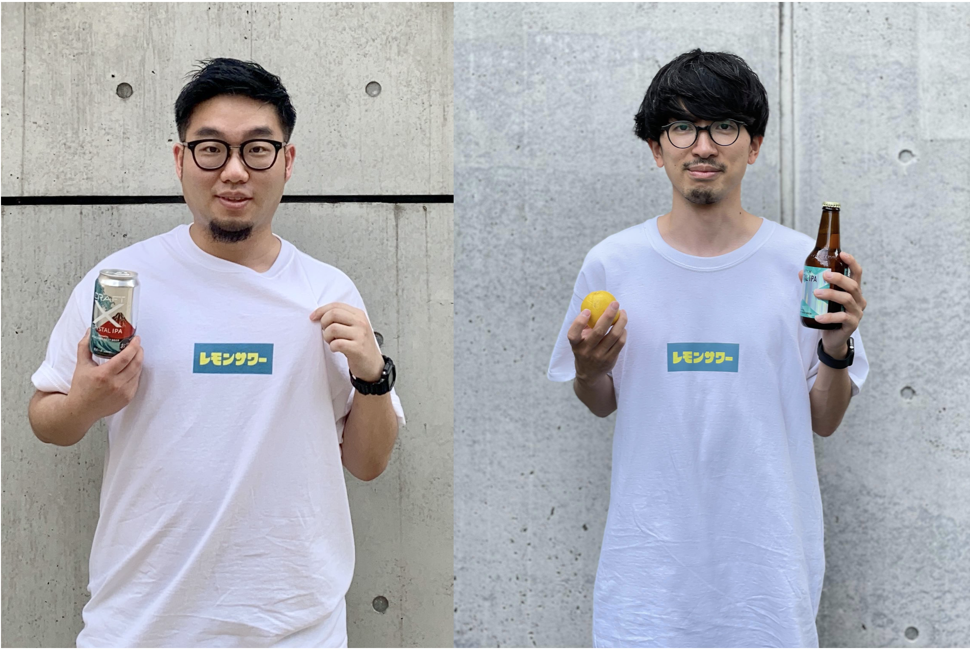 今回は、One Dropさんの大人気商品「ふくだ レモンサワーTshirt」をベースに、無添加レモンサワー「PULEMO」とのコラボを記念したオリジナルデザインを制作し、新たにリターンとして提供開始します!コラボを記念して(?)One Dropブランドディレクターの杉目さんと、CRAFT Xブランドディレクターの松田が「ふくだ レモンサワーTshirt」を着てみました!おもしろいものができそう・・・ですよね!