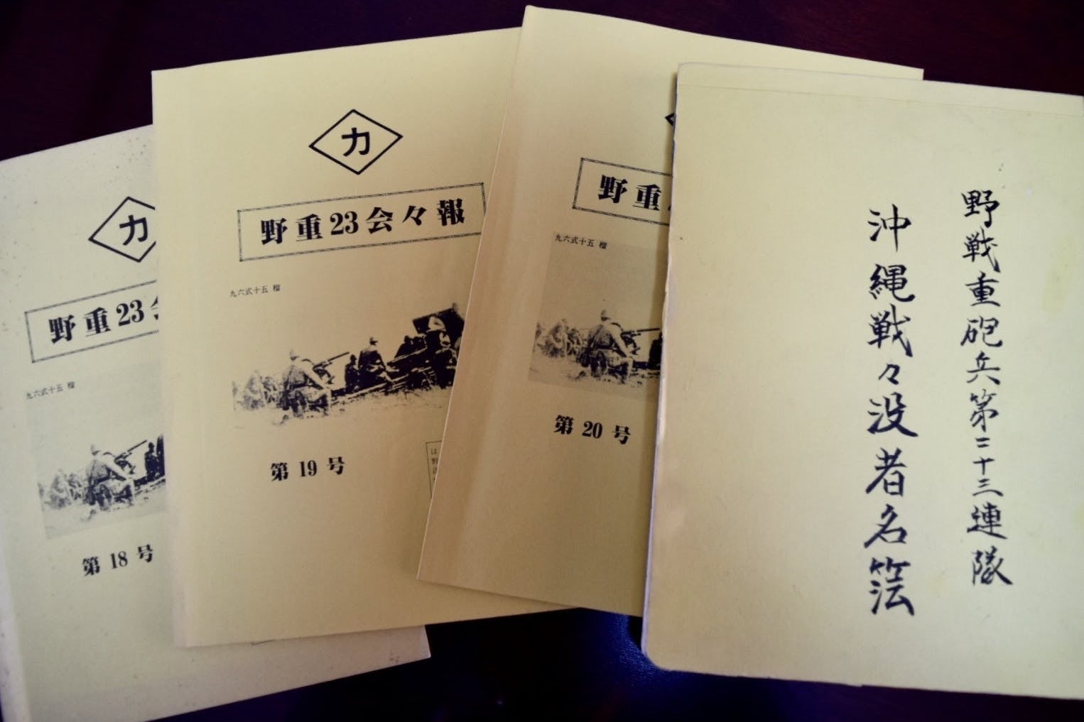 2年前、同部隊に所属し戦死した兵士の遺族から、野重23会が書き綴った「野戦重砲兵第23連隊抄史」「野重23会々報」を託されたことにより、満州そして沖縄戦の部隊動向が判明し、さらに戦後に慰霊碑が建てられた経緯など、浄土寺の住職からお聞きすることができました。