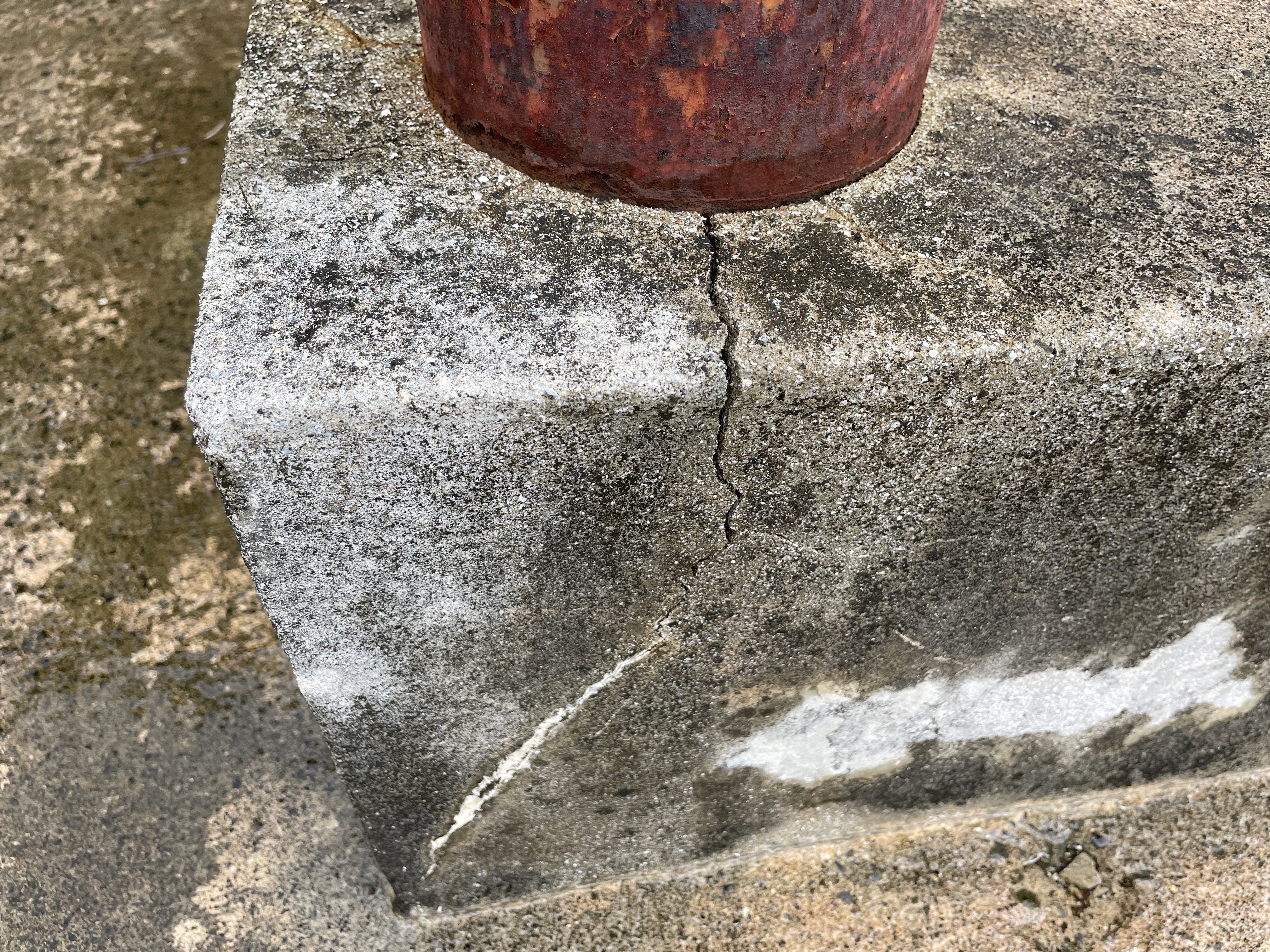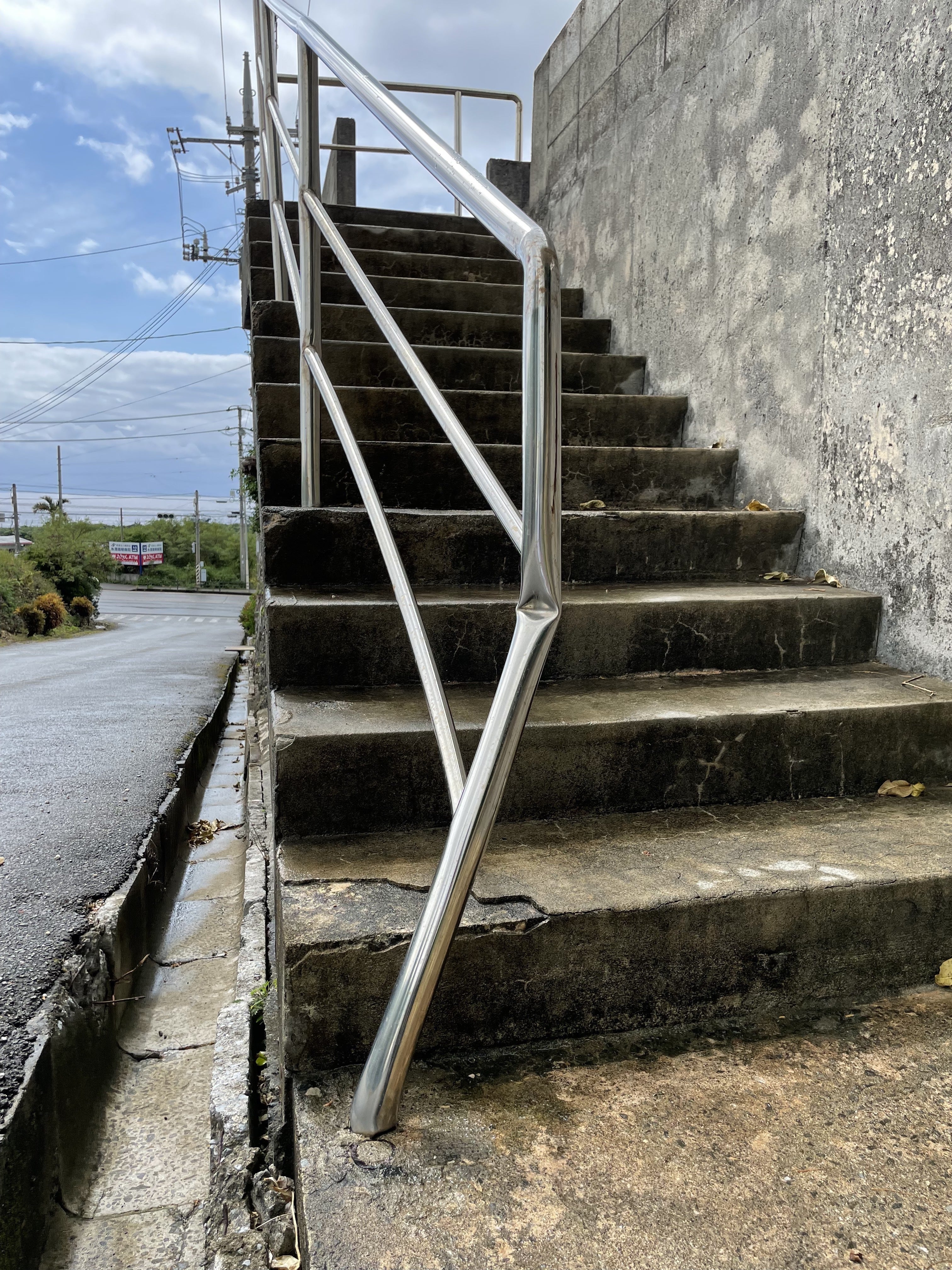 慰霊碑に向かう手すりが曲がったり、台座の劣化が激しく進んでいます。