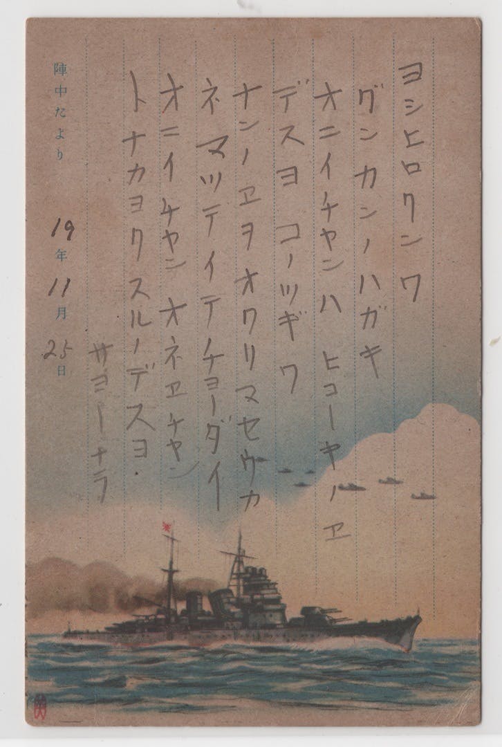 400通もの便りを送ってきた半次でしたが、沖縄から届いたのはわずか3通。自ら描いた絵手紙ではなく、既製の絵葉書に文字だけを短く記したものでした。 最後に届いた1枚には「オニイチャン オネエチャント ナカヨクスルノデスヨ サヨーナラ」とあります。一方で 「コノツギワ ナンノエヲオクリマショウカネ」とも書いています。次の便りも送るつもりだったのでしょう。