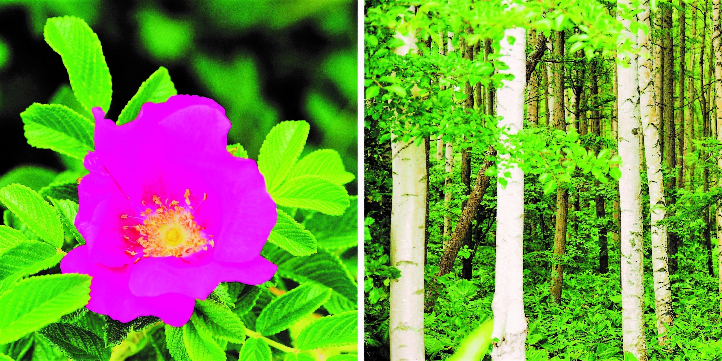 写真)左:ハマナス、右:シラカンバ