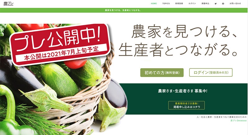 2021/06/22 12:17本日「農プレDatabase」のプレ公開をはじめました。https://nogyopr.com/検索機能が使える本公開は7月上旬になりますが、農プレの概要や、登録・掲載申込は受付可能になっております。SNSなど情報発信に意欲的な農家・生産者さまには数多くご活用していただけますよう、農プレ(プレ公開)にぜひ訪問ください! もっと見るリターン発送開始しました!