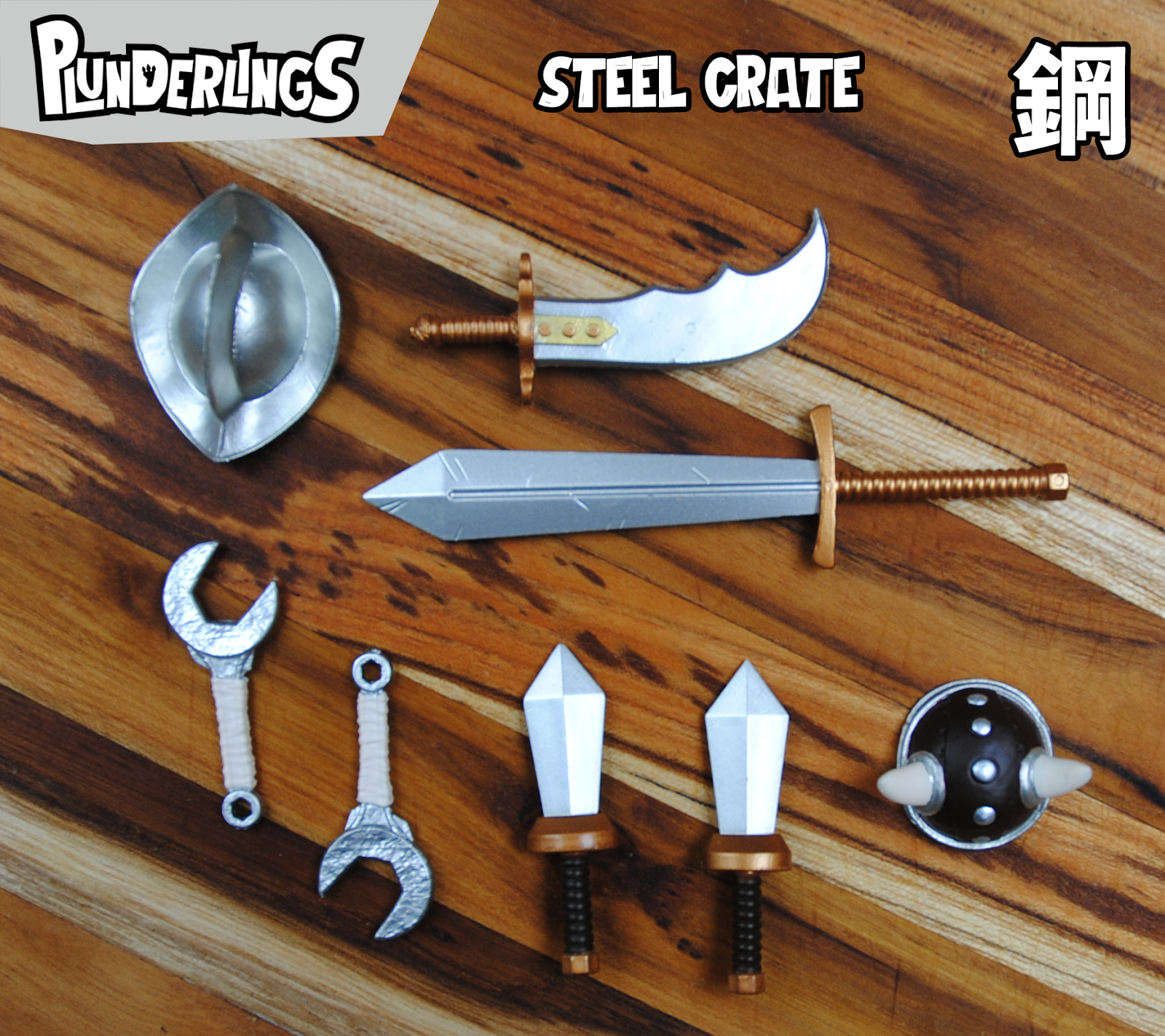 それとも、あなたのPlunderlingsのチームは戦いに夢中になっていますか?戦うためには鋼の箱が望ましいでしょう! 2つのヘルメット(1つは角があり、1つは征服者のヘルメット)、2つの短剣、2つのレンチ、1つの長い剣、1つのシミター(三日月刀)が含まれています。