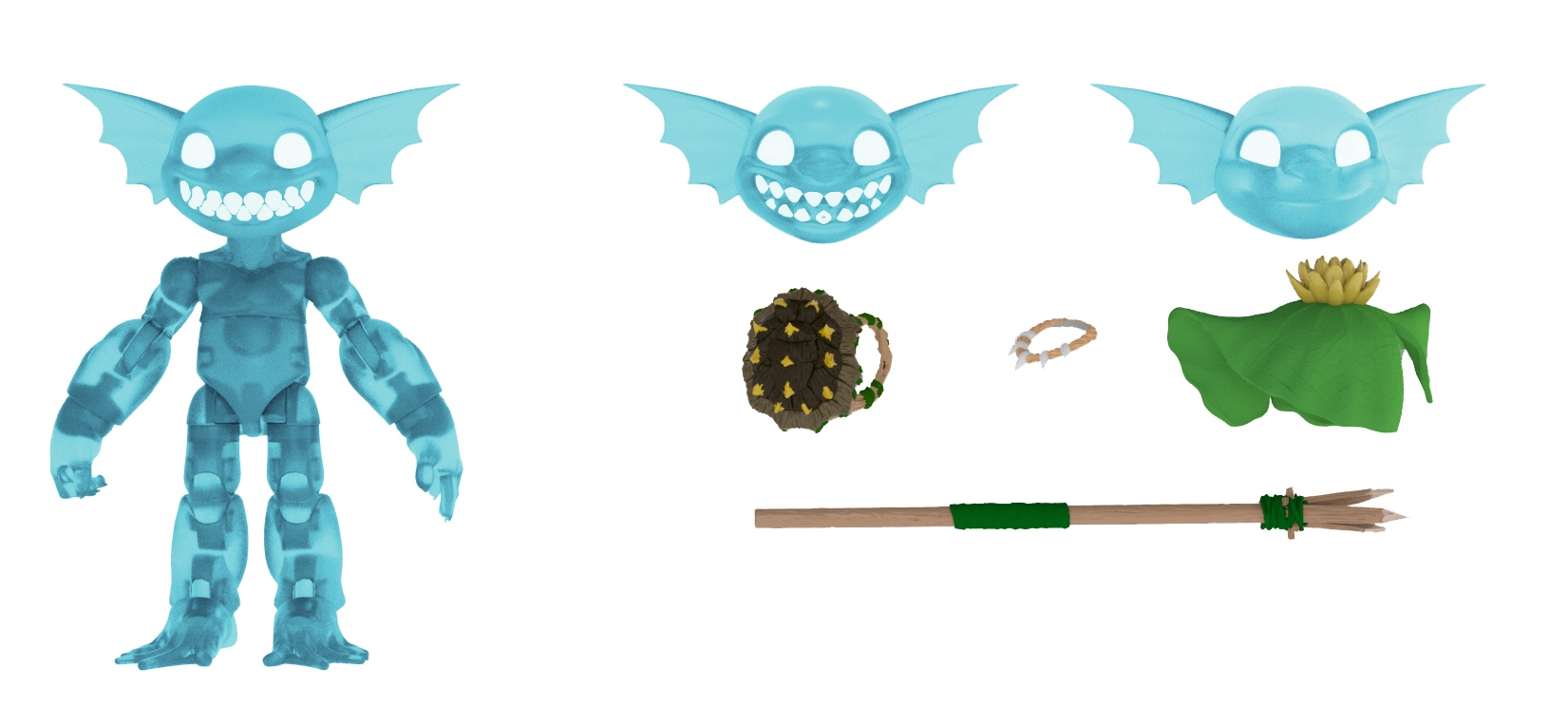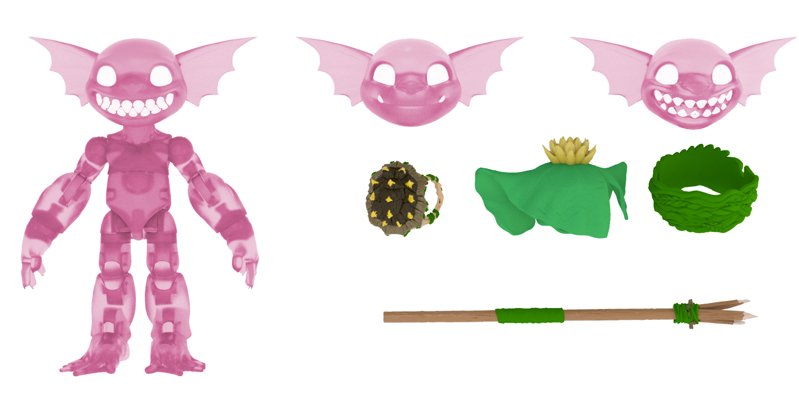 写真でPlunderlingsが身につけているアクセサリーは、付属品アクセサリーセットの木材・鋼の箱に含まれています。
