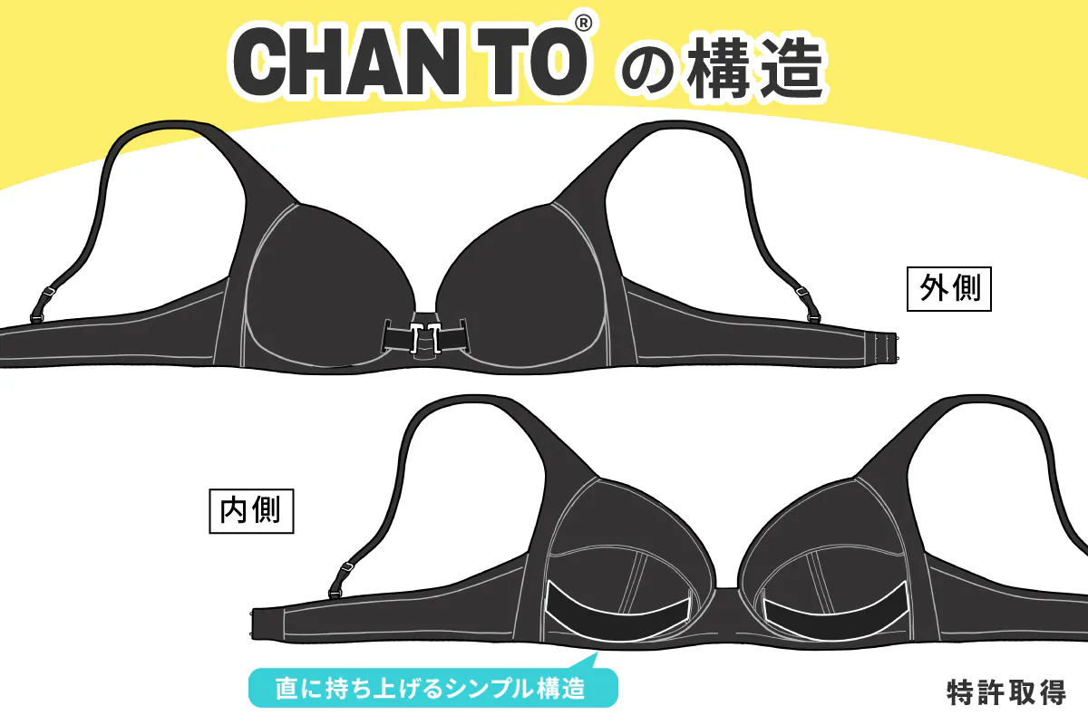 ■ 特許出願から始め約2年、開発段階にある 新規ブランド「 CHAN TO® 」 第一弾としての、ブラジャー「みせブラではない 自分のためのブラ」を発売することです。