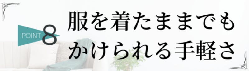 服を着たままでも気が付いた時にサッとかけられるので、めんどくさがり屋の方でも使いやすいです。