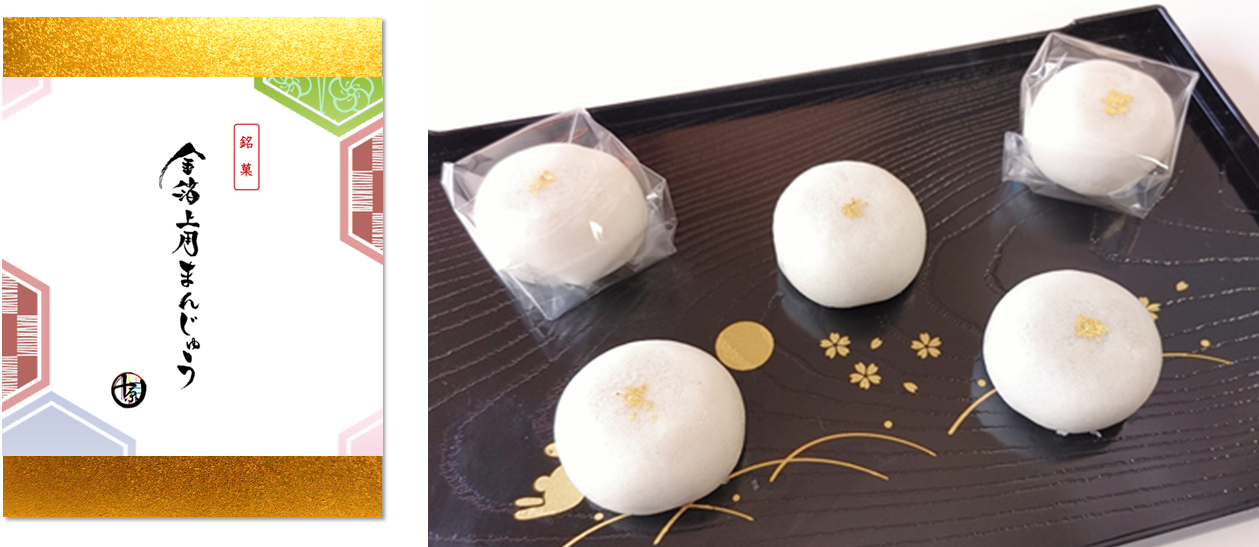 金箔上用まんじゅう・・・金箔のせちゃいました!もちもち上用まんじゅう!