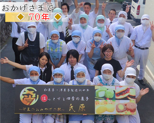 静岡県伊東市にある創業1951年の和菓子・洋菓子製造、氏原製菓の代表取締役内山直樹です!おかげさまで今年で70年目を迎えることが出来ました。誠に有難うございます!