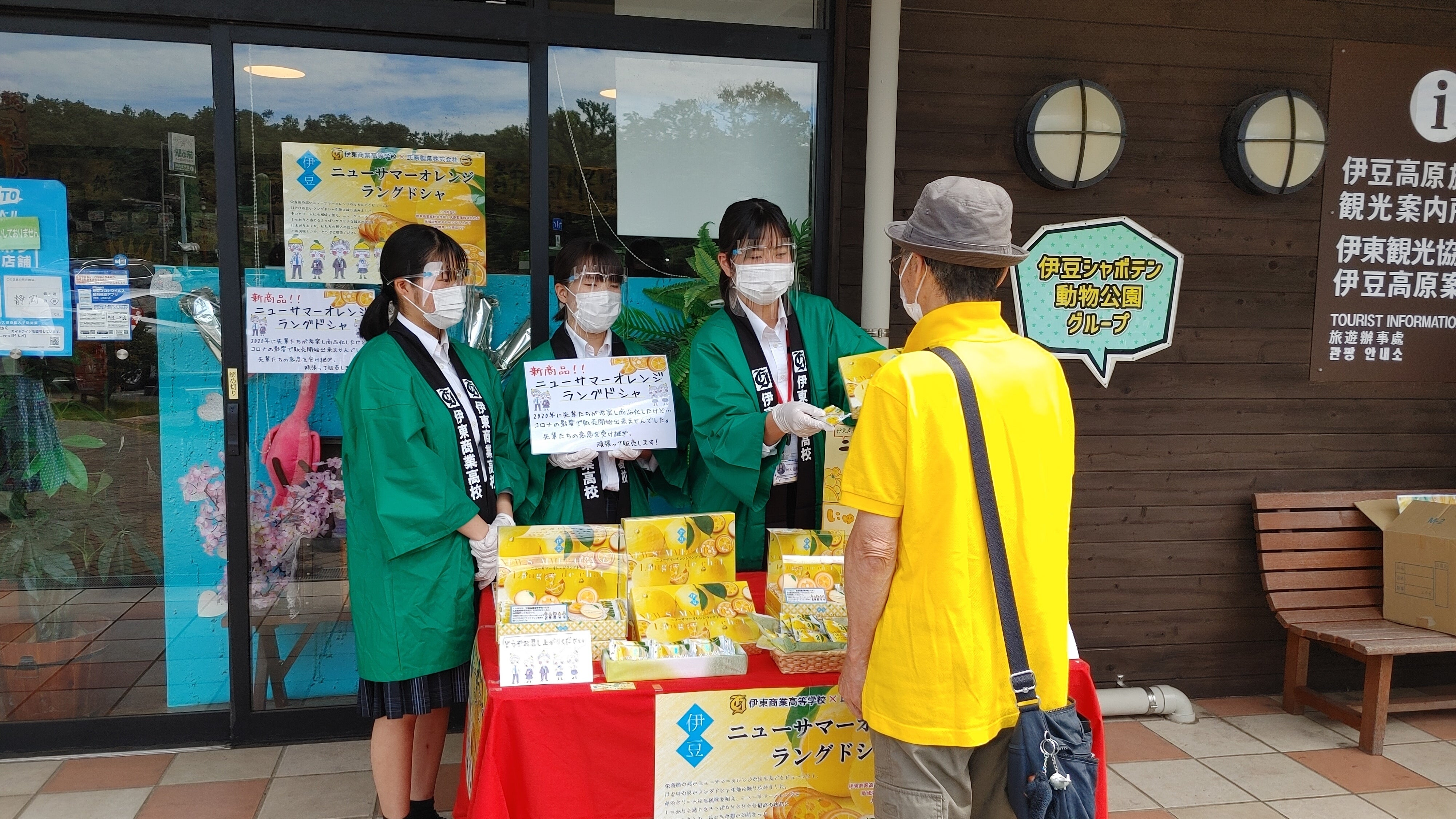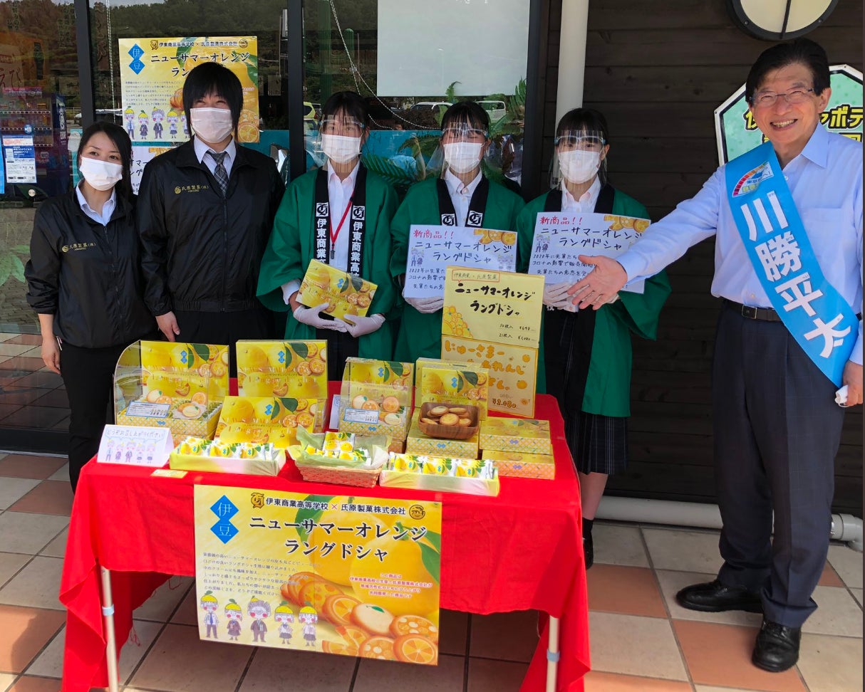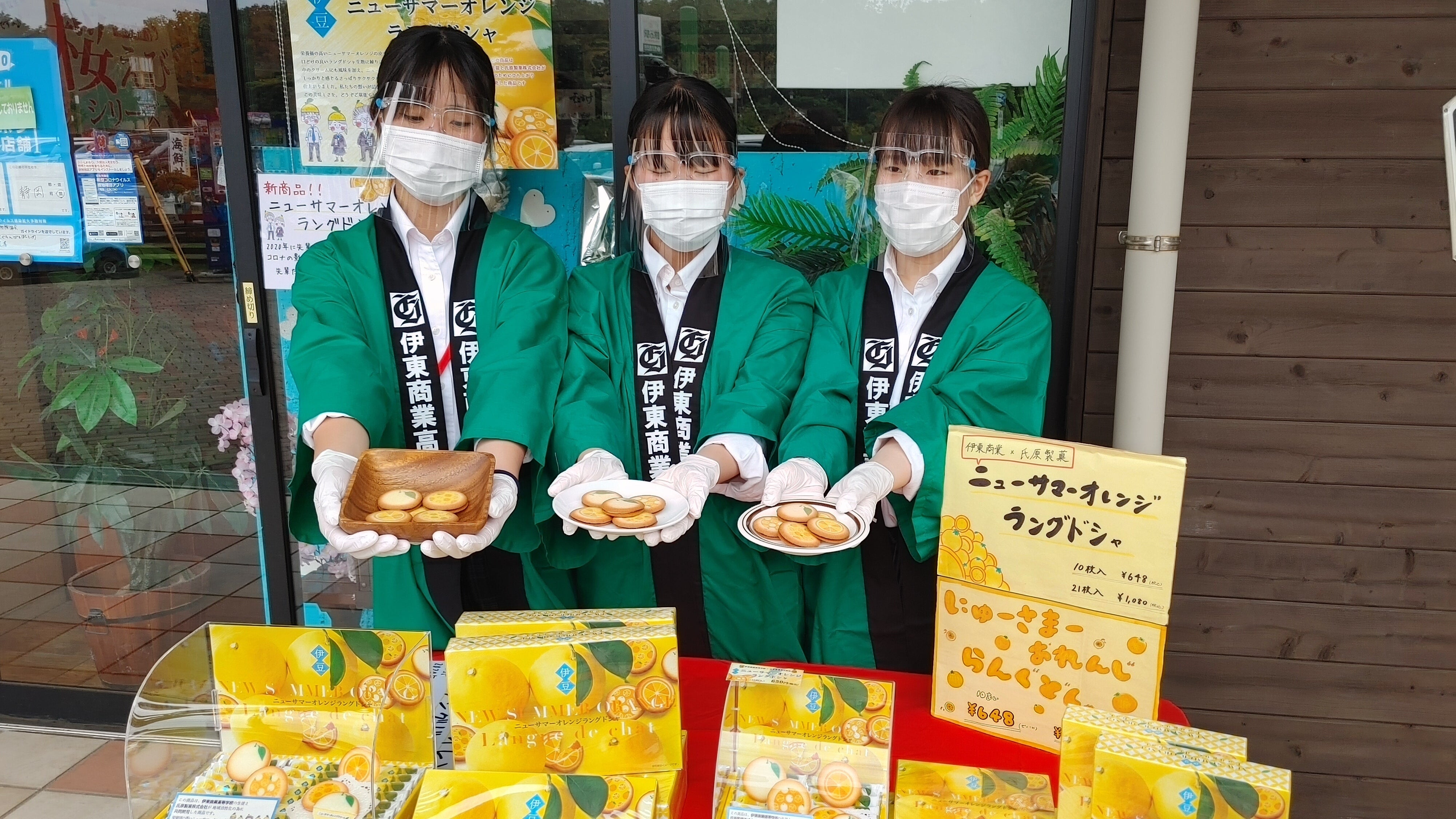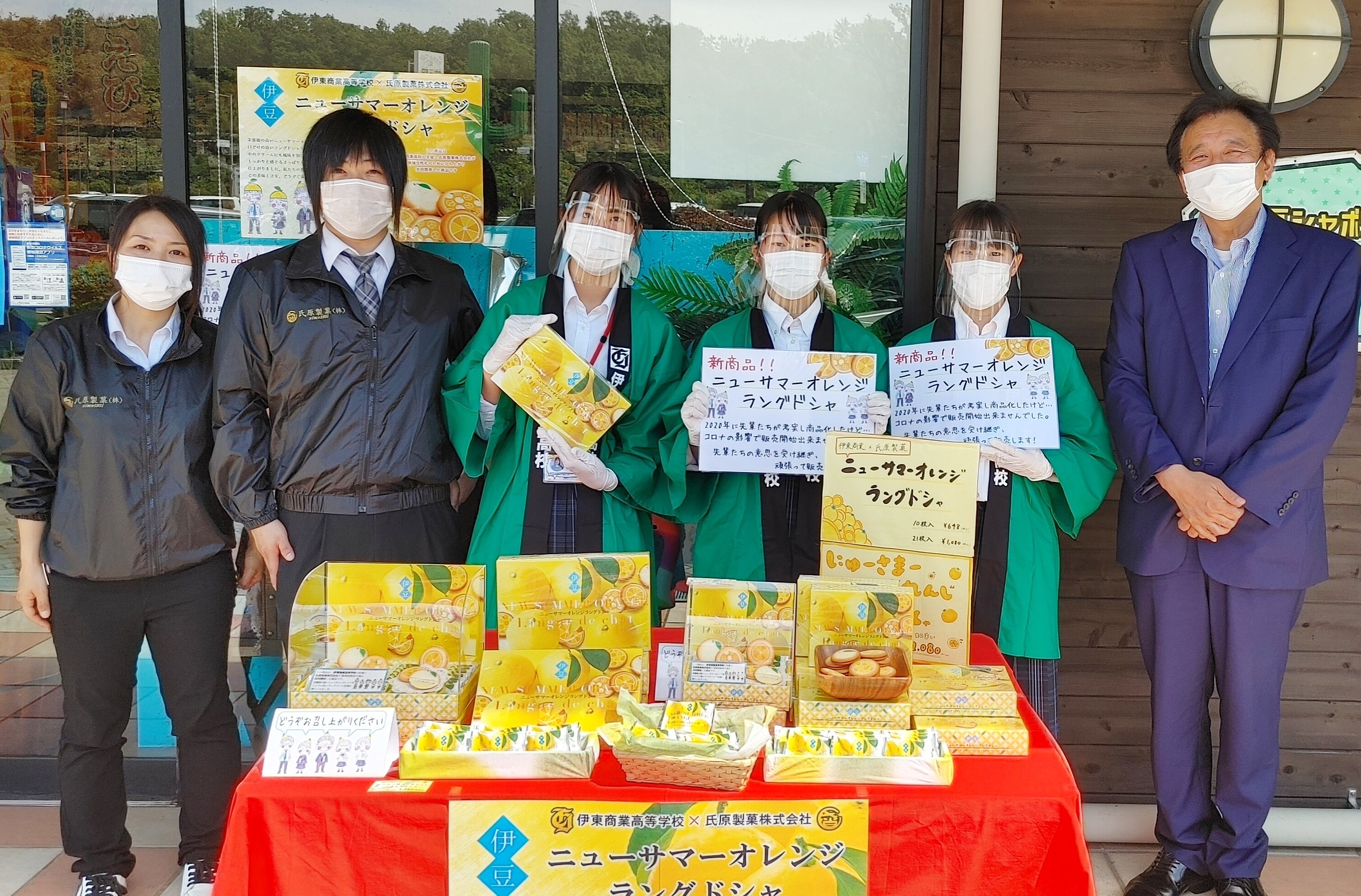 2021年6月7日 新商品「ニューサマーオレンジラングドシャ」発売を記念して、伊東商業高校生と氏原製菓による、試食販売を行いました!