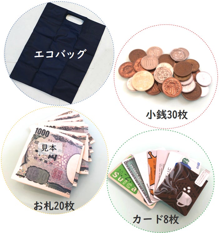 エコバッグ、小銭30枚、お札20枚、カード8枚も収納!
