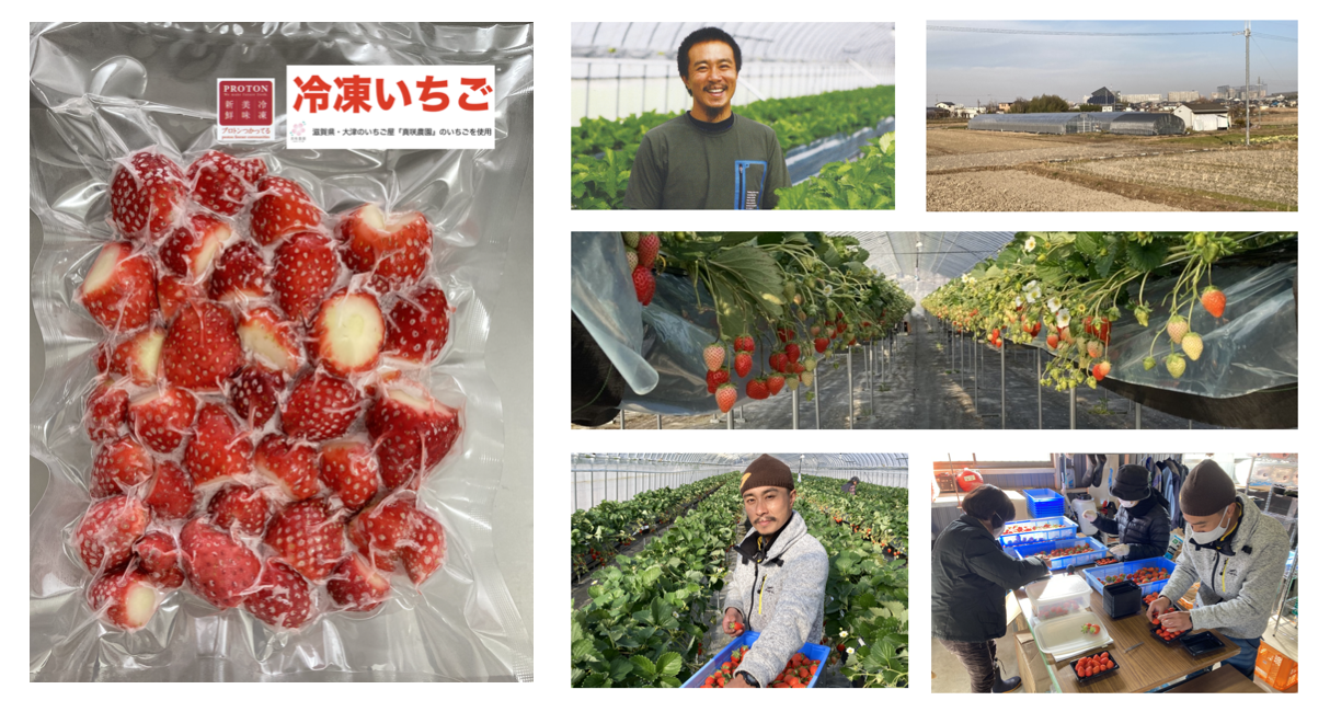 いちご農園の形の悪いいちごなどを生産者さんから購入し、プロトン凍結機によって高品質な「冷凍いちご」として生まれ変わらせています。※プロトン凍結機とは、食材の鮮度や食感、風味、うま味を成分を壊さずに凍結する冷凍技術です。