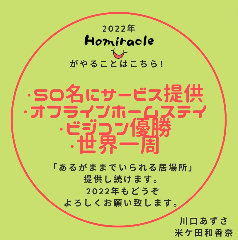 来年もぜひ、あるがままでいられる居場所を届ける私達Homiracleの進化を、見守って下さると幸いです。