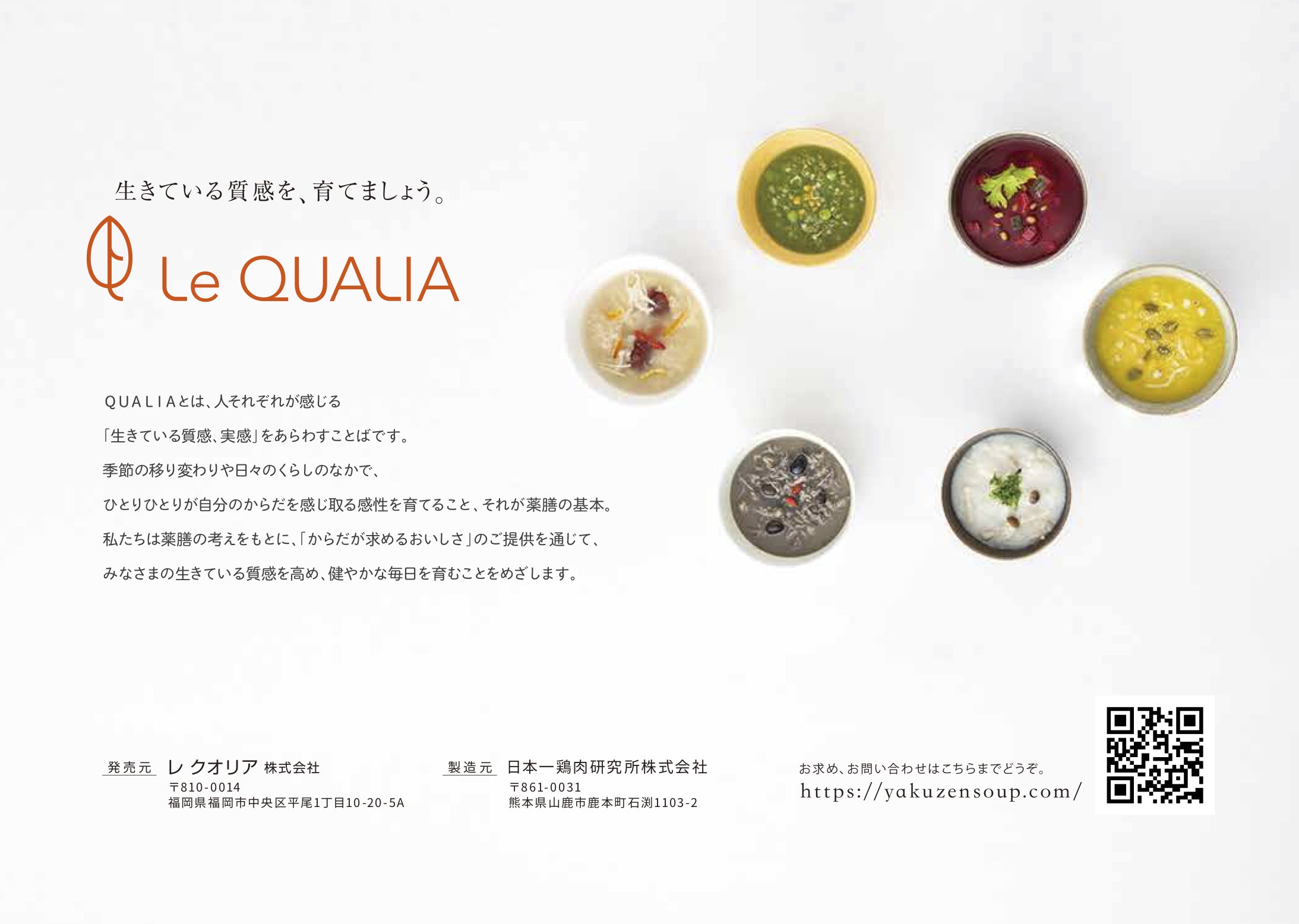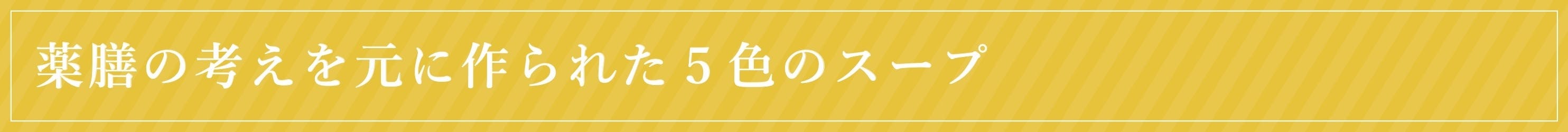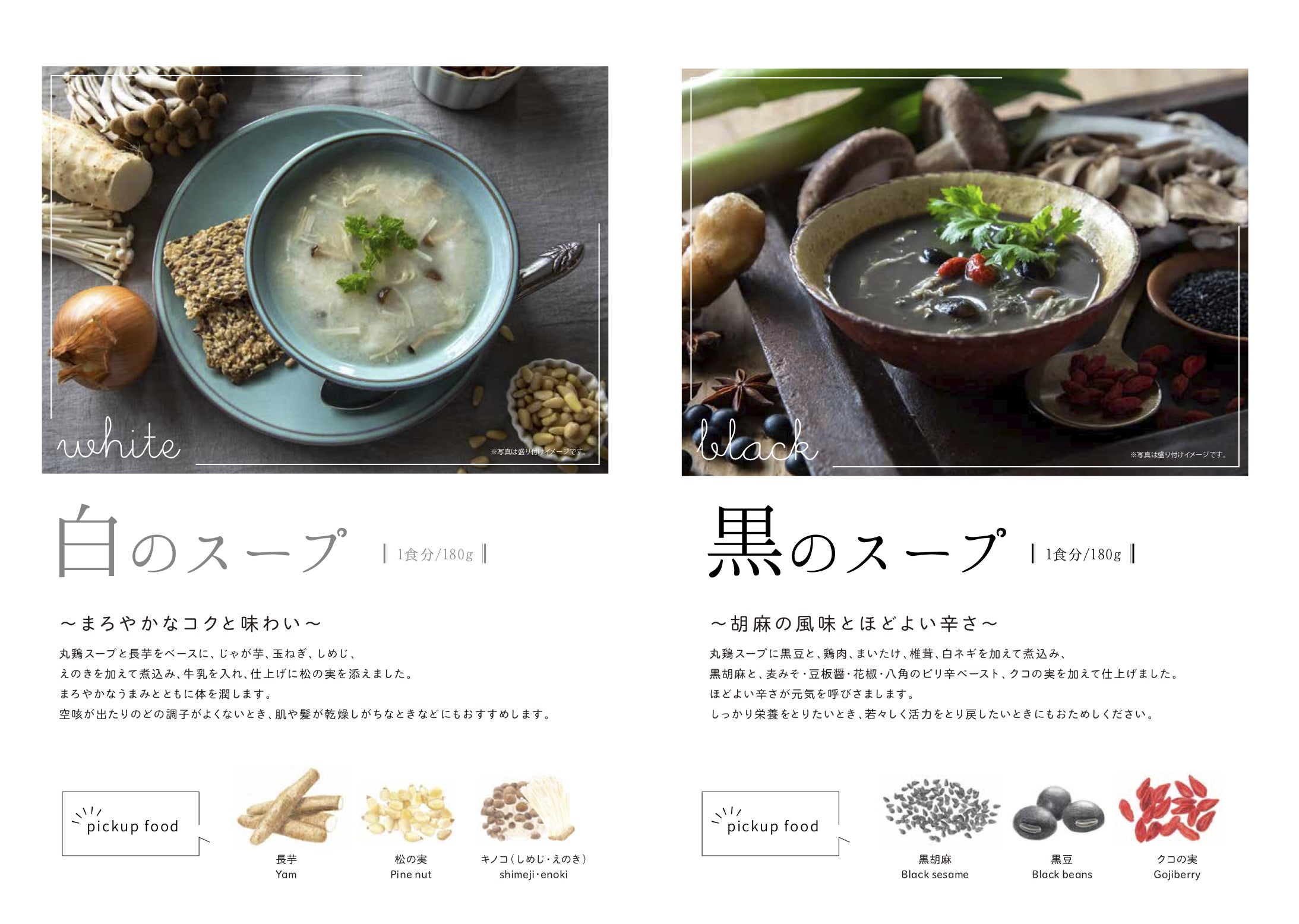 国際薬膳師の資格を持つ薬膳料理研究家・SATOEが約二年間の歳月をかけ、6つのスープを作り上げました。素材の組み合わせ方、丸鶏スープとの相性、ご家族皆で楽しんでいただけるよう最終的な味の調整など、細部までこだわりぬいた薬膳スープです。