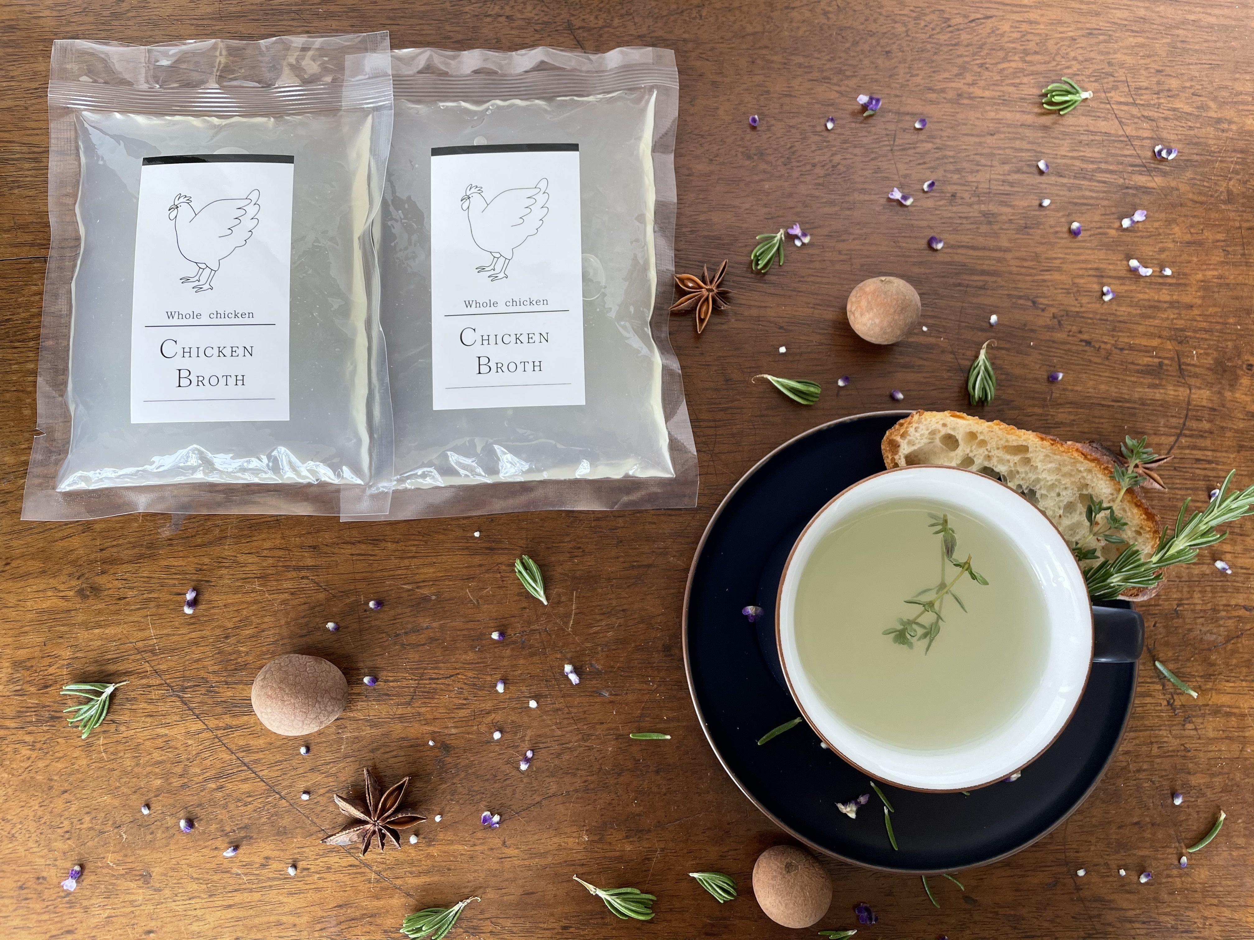 今回紹介するチキンブロススープは、グループ会社の九州産「うまかハーブ鶏」の丸鶏を使用。本当に美味しい鶏肉をお客様に届けたいと飼料から養鶏場、処理加工まで一貫してグループで行っています。