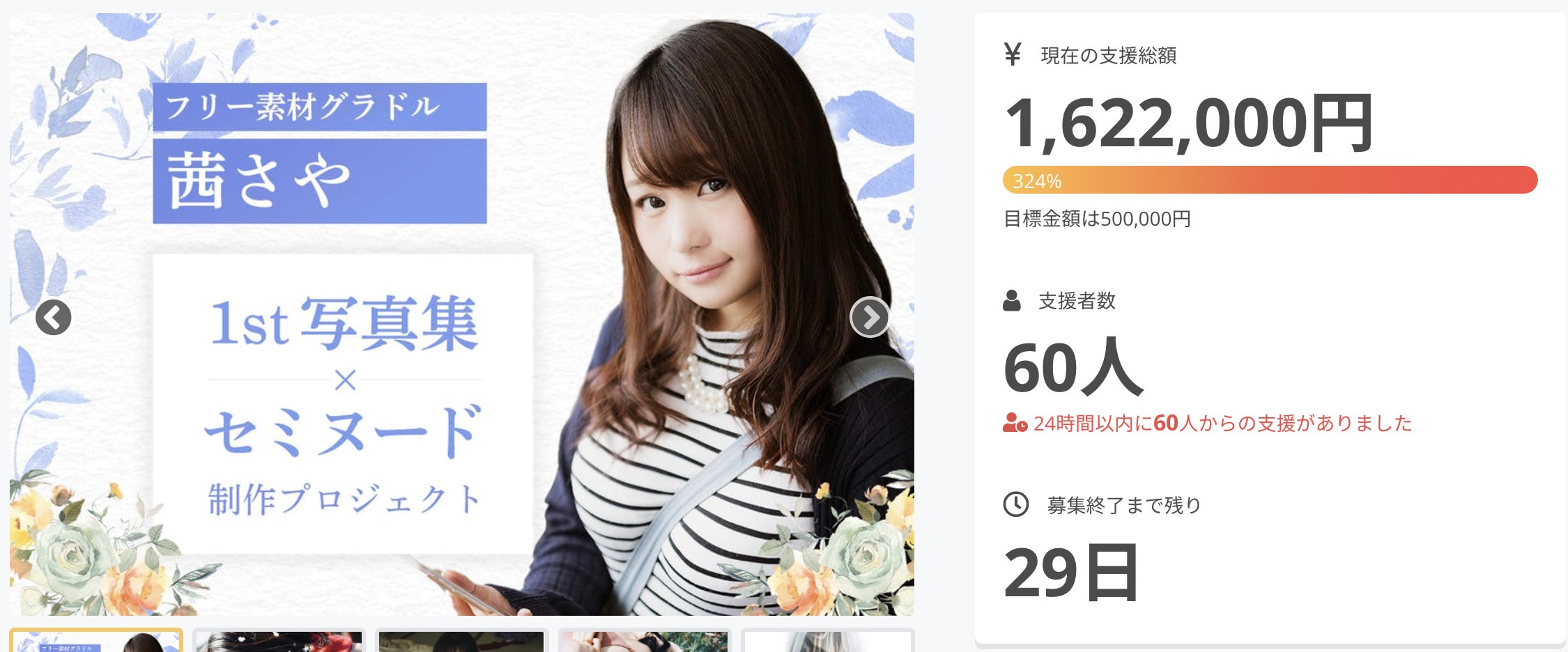 おかげさまで目標金額に対して、