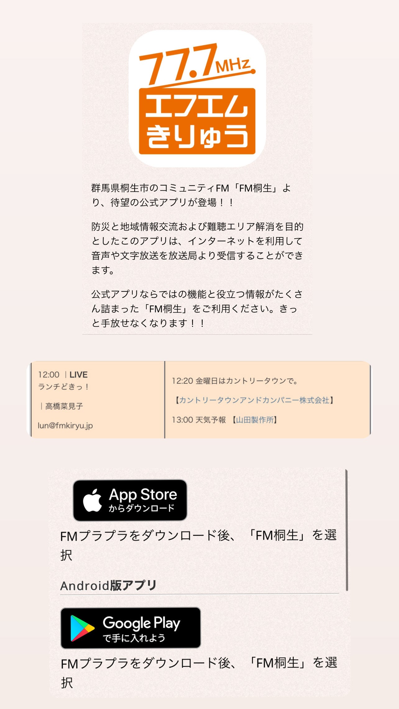 ラジオが聞けない!なんて方はアプリで『FM桐生』を検索すると出て来ますので!