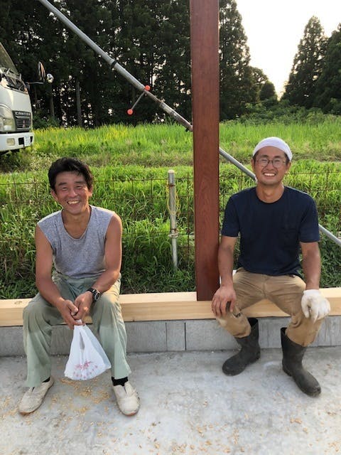今回のピザ小屋づくりの現場を中心になって進めてくれたのは、立山・岩峅寺で親子二代に渡って大工を営む山本建築さん。4年前に薪風呂改修ではじめてお世話になって以来、山本さんは、我が家のかかりつけ大工さんとして、洋間改装、トイレ増築と毎年のようにお世話になっています。また、山本さんの手による空間は民泊に滞在したり我が家を訪ねて来るゲストのみなさんにも喜ばれています。