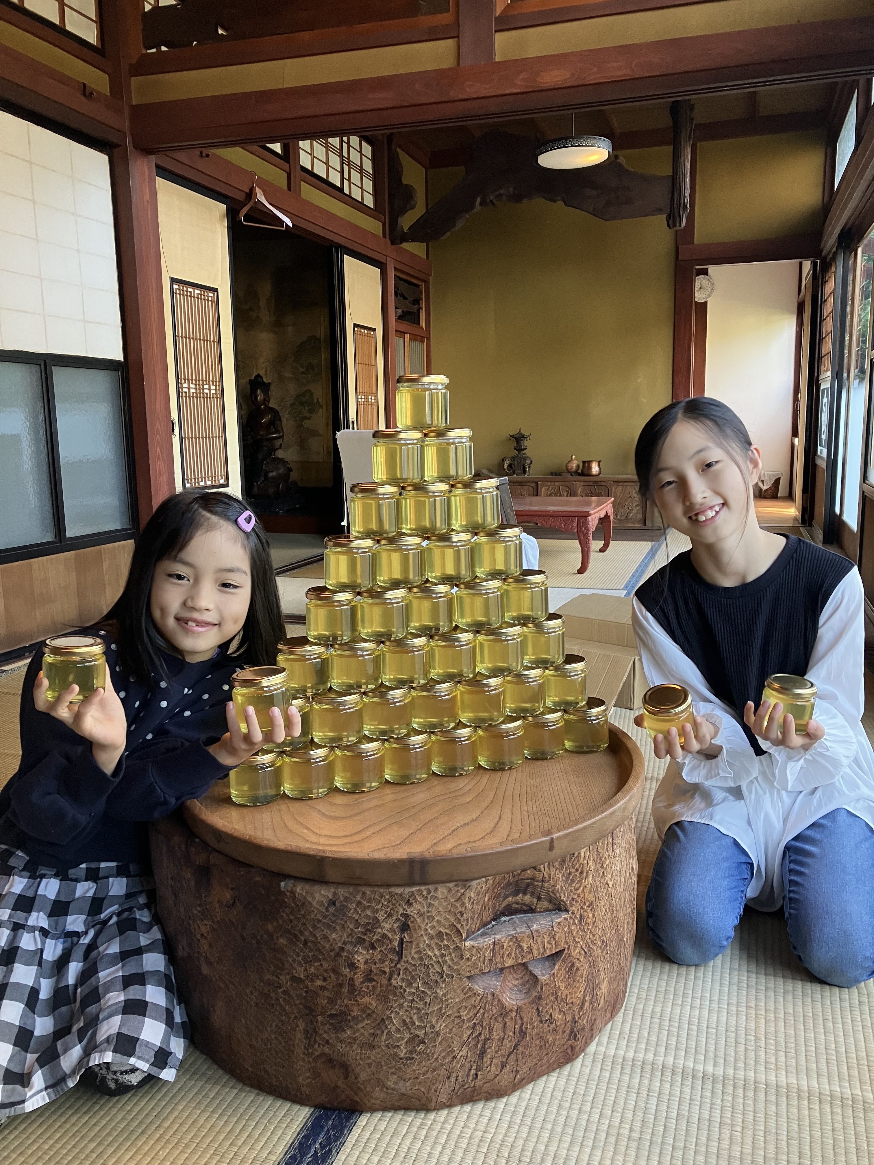 蜂たちの頑張りで5月にははじめての採蜜。夏の間、沢山のハチミツを採ることができました。
