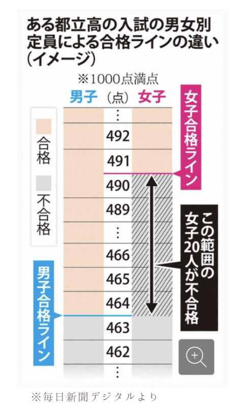 都立高入試、男女の合格ラインで最大243点差 8割で女子が高く
