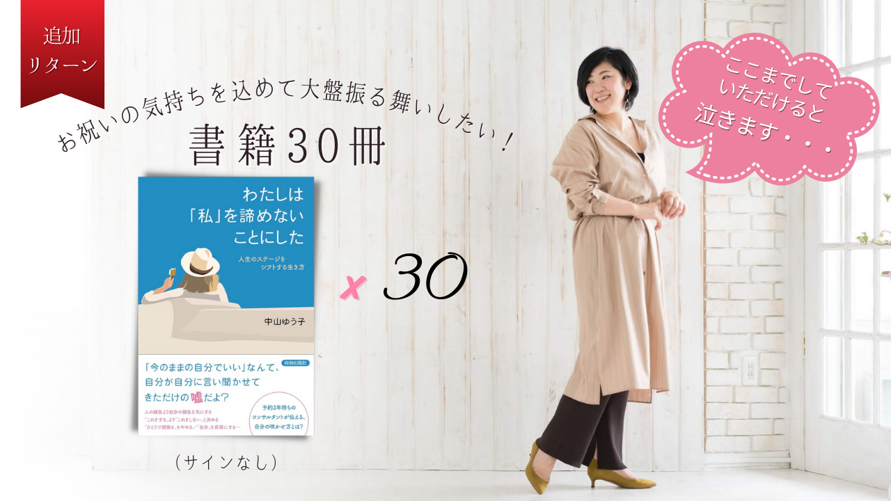 2021/11/28 16:52こんにちは。中山ゆう子です。皆様に支援していただいた当クラウドファンディングの支援金の使い道について、その後のご報告をさせていただきます。<受取額>1,669,902円(2021年8月31日)達成金額 ー Campfire使用手数料=振込額<使用額>これまでに、計約146万円を使わせていただいております。(内訳)・書籍346冊(発送済み)532,840円・送料 約80,000円・書籍PR代行費用 850,000円(7〜11月までの4ヶ月分) などせっかくご支援いただいた皆様からの応援のお気持ちを、「書籍PRの広告費」に充てたい、と、出版社へ連絡をとっておりました。「それならば、効果的なものを考えましょう!」とお返事いただいていたのですが、約3ヶ月が経ち、やっと、やっと、広告のお話をいただきました。長かった・・・これから、Amazonへ広告を打つ算段で、出版社さんが動いてくださっています。広告が出ましたら、また改めてご報告させていただきますね!そして、PRの効果も少しずつ出ていまして、11月30日には、ある媒体で、ご紹介いただくことに決まっております。発表されましたら、皆様にもご報告させていただきます。中山ゆう子 もっと見る【クラファンの中間報告】ご支援金の使い道、お返しの状況