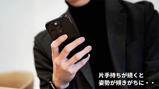 このように、普段の片手持ちだと姿勢が傾いたり、無理に両手で持つと猫背になりがちです。