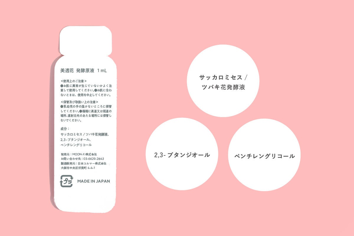 ミネラル豊富な大地で太陽をたっぷり浴びて育った宮古島の椿の花びらが持つ美白作用に着目して生まれた世界初*1の美肌有用成分サッカロミセス/ ツバキ花発酵液を90%以上配合。