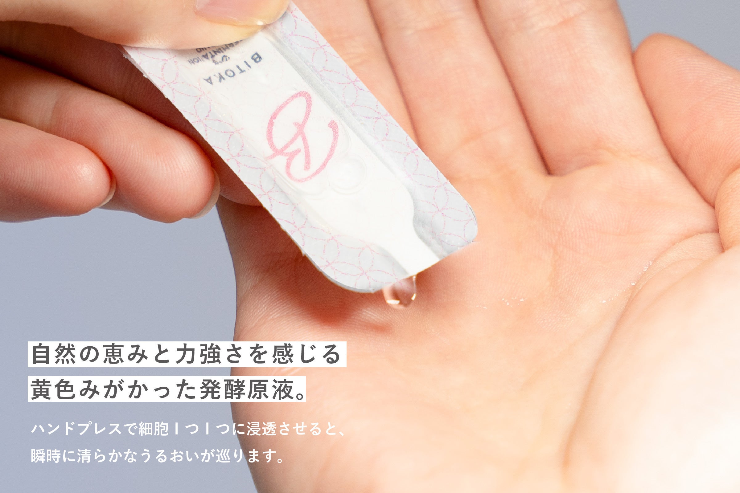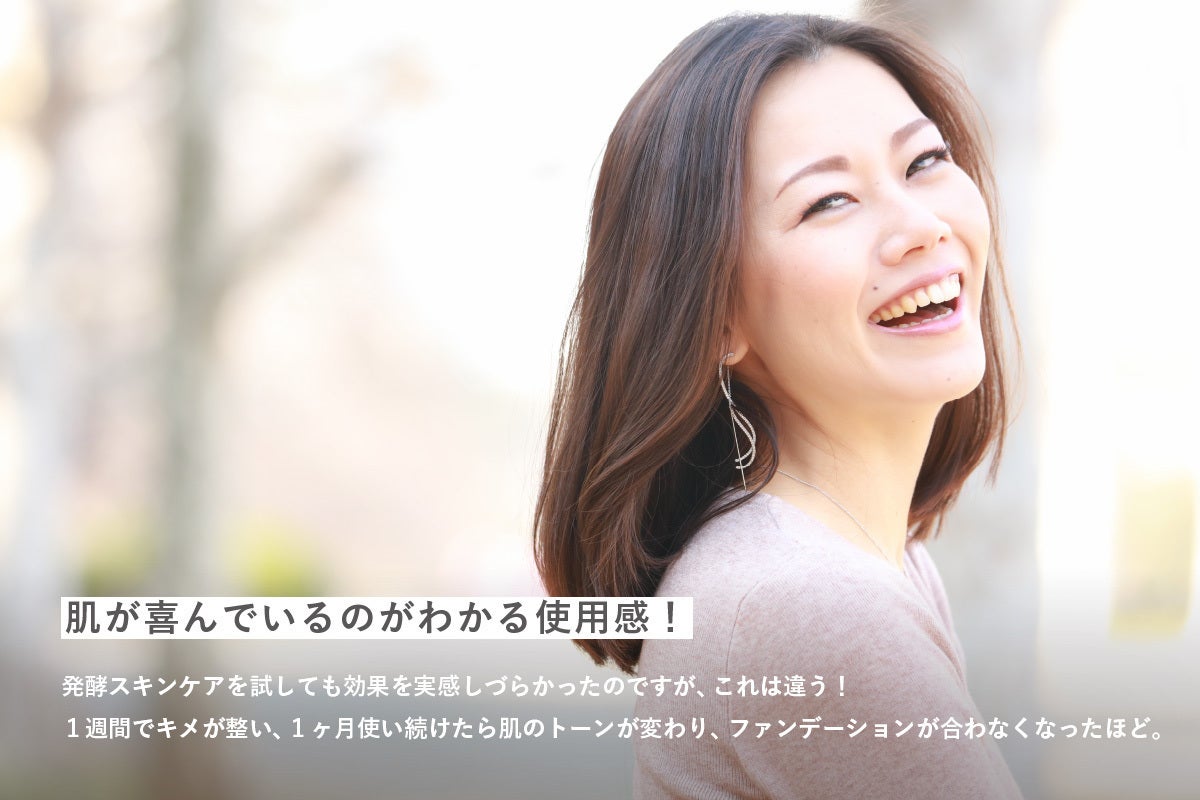 お肌になじませると、発酵液ならではの独特の香りと、瞬時にお肌に巡る清らかなうるおいに、自然の恵みと力強さを感じます。