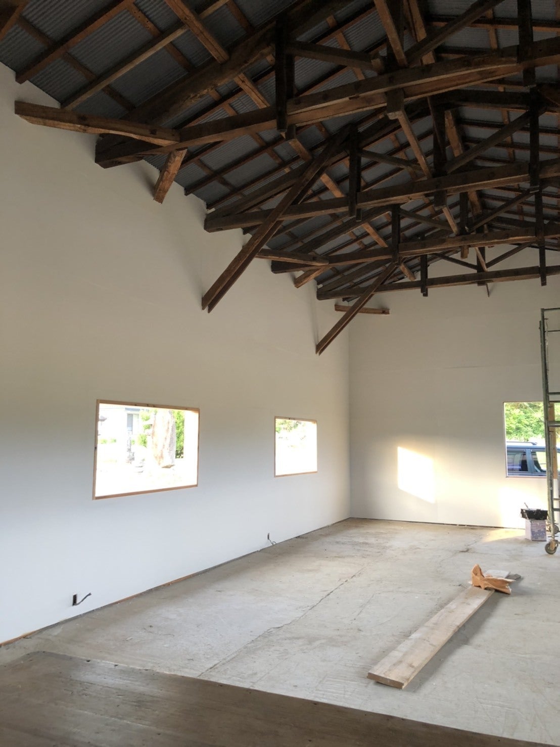 「この建物は両小屋組みと言って、札幌の時計塔台と同じ構造ですね。資材置き場になっていたのですが、いろいろ物を片付けてこの建物の全容が見えた時、ここはアートスペースにもなり得ると思いましたね。この空間に大給さんの食があれば、それこそ食をアートの世界まで持っていけるのではと思いました。それくらい、いろいろな可能性が場所から受け取れました。ここで夕日を見ながらご飯を食べたいです、ぼくが(笑)。ここでしか聞けない音楽もこれから生まれるはず。だからといって身内だけでかたまるような狭いコミュニティではなく、観光客も多く通る場所にお店ができるので、地域にも開かれた場所になるはずです。観光地に来て、初めて入ったお店でその土地の食が語られることも多いと思うので、そういった意味でも北杜市の玄関口に位置するということも大きな意味があるのではないでしょうか」