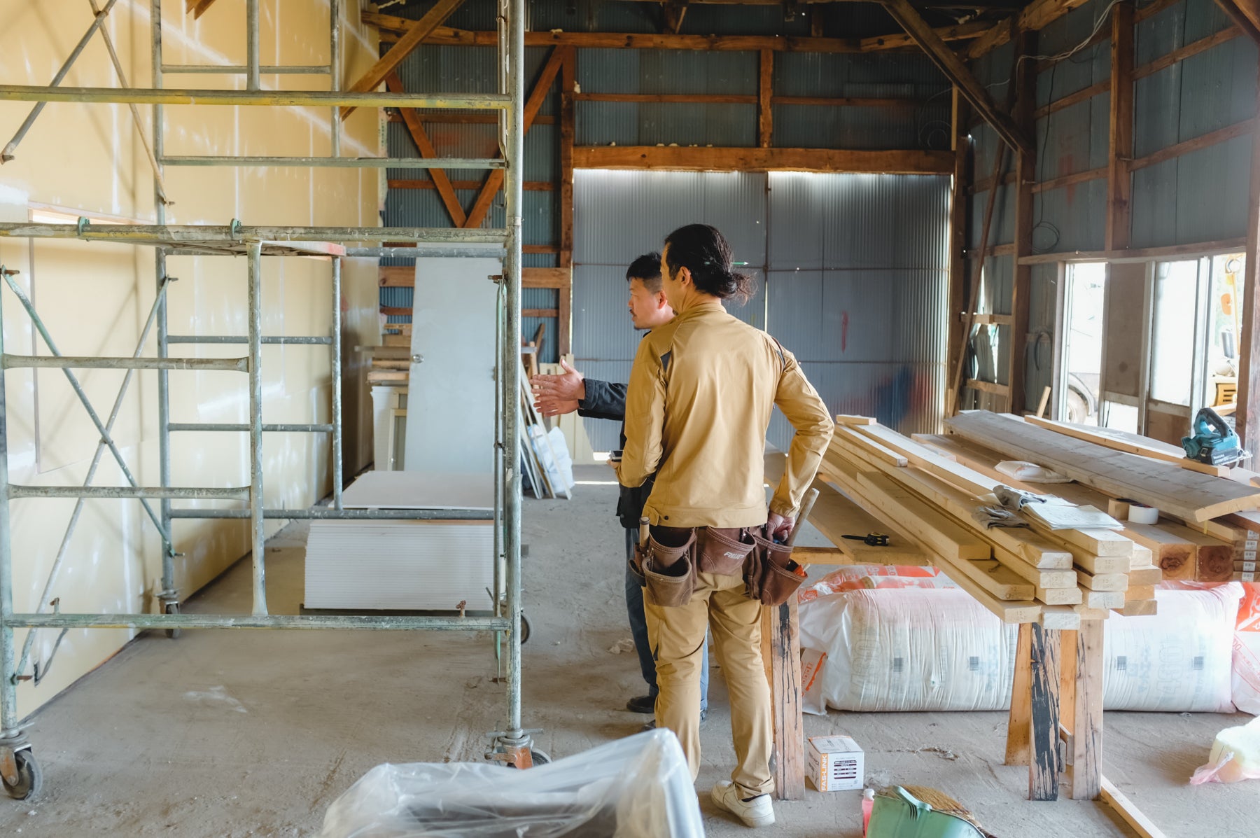 そうして、前のお店の常連さんでもあった大工の“甲斐の匠”小田切さんにすぐ来てもらって、この小屋を改装してお店が開けるかを見てもらいました。大変そうな部分も予想通り多そうでしたが、この場所でしかできないことがあると言ってくれ、工事も小田切さんが快く引き受けてくれました。